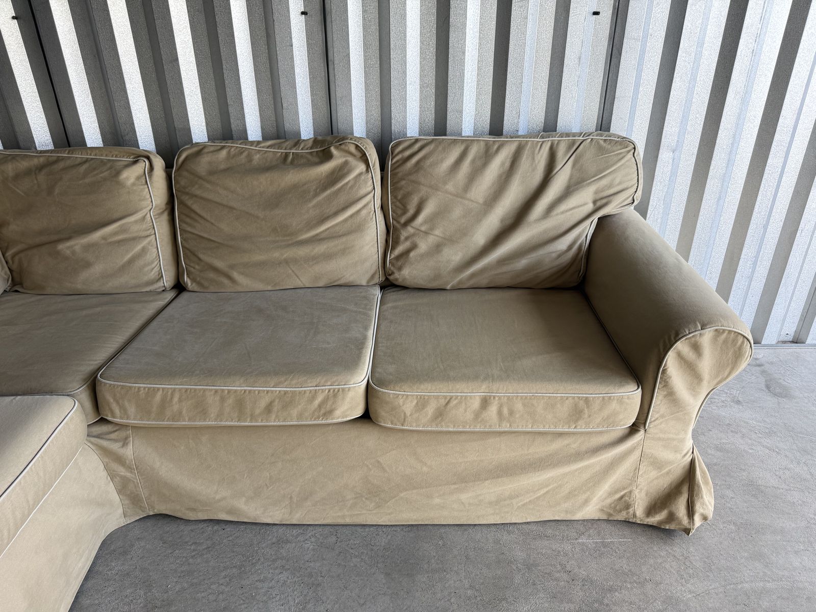 CashAppComfortable 3 piece sectional in great condition! Pet and smoke free. Some minor wear to the material underneath the cushions. (Pictured) Otherwise its in great shape. Feel free to come check it out!