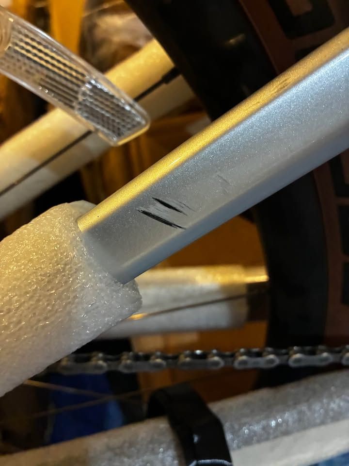 The bike is in excellent condition. It has a few minor cosmetic scratches, but they are small and do not affect the performance or functionality at all.