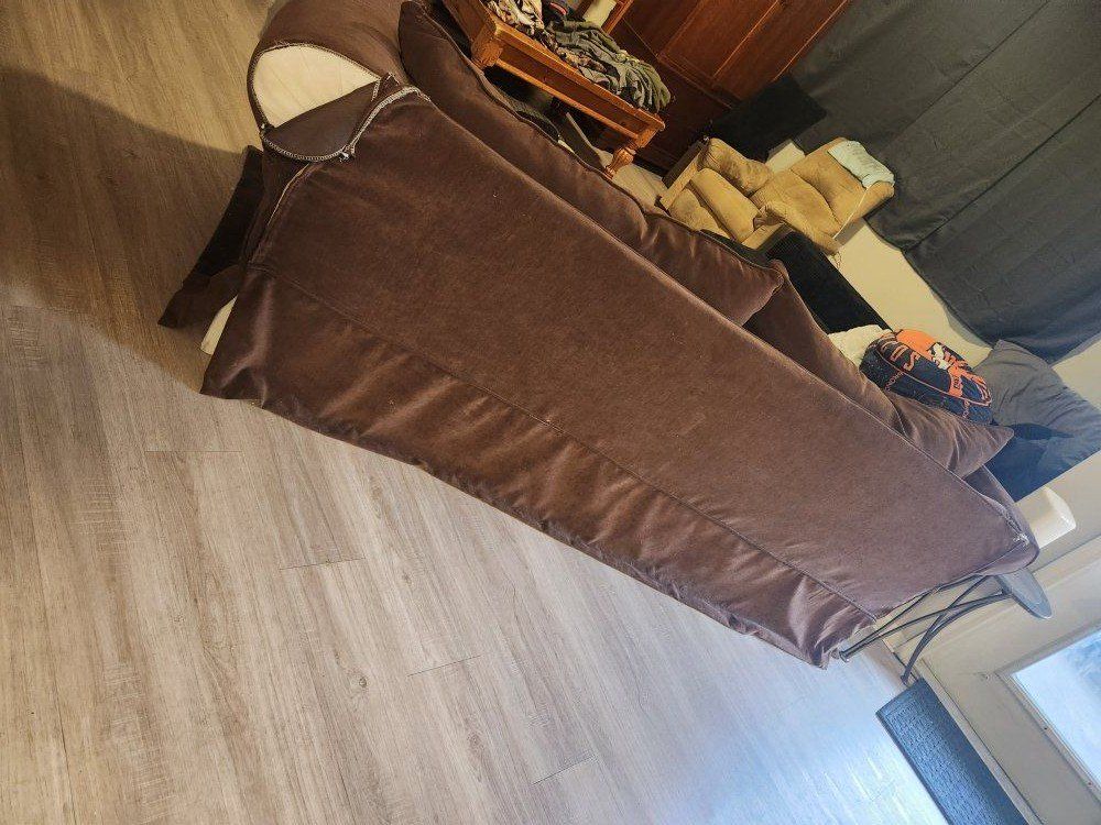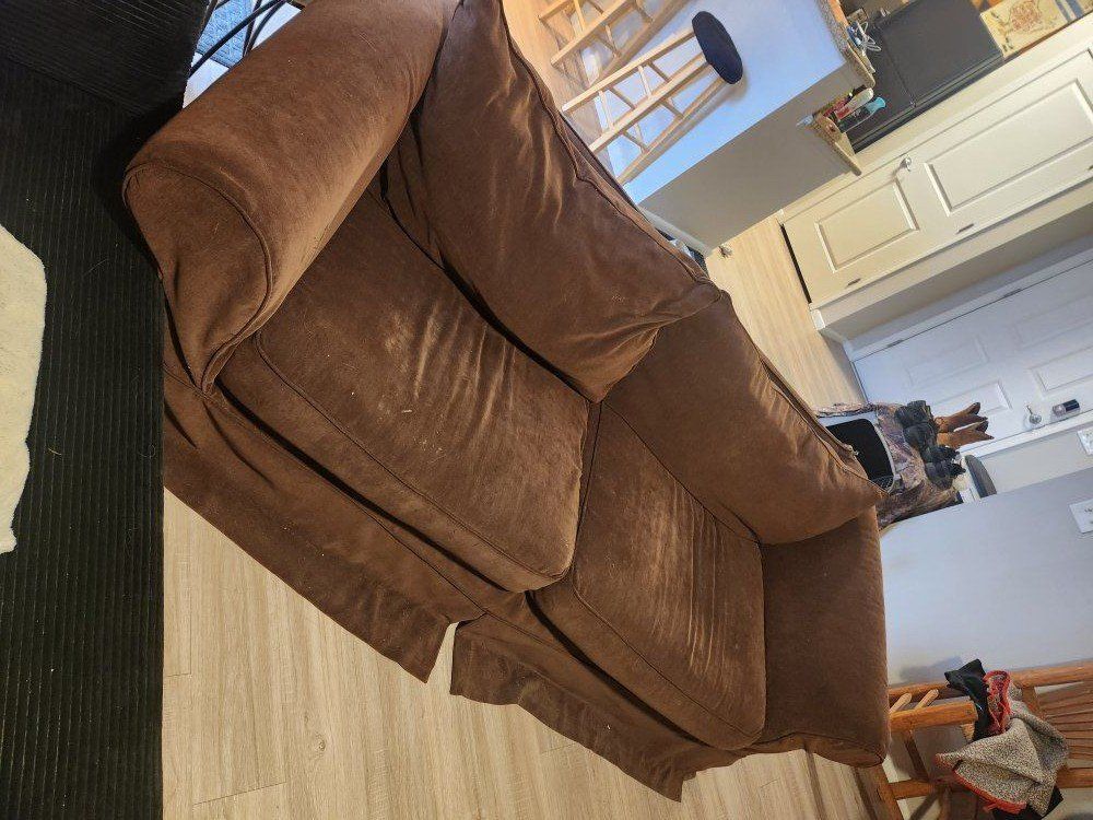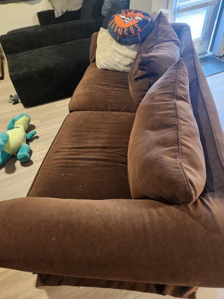 CashAppSelling my brown couch/sofa. It sits up 3-4 people depending on the size. Cushions are good condition, but the cover on the back has small wear and tear damage around the corners. The couch cover is removable with a zipper, and the cushions are also removable so you can wash them if needed. It's yours if you come get it. $100 OBO