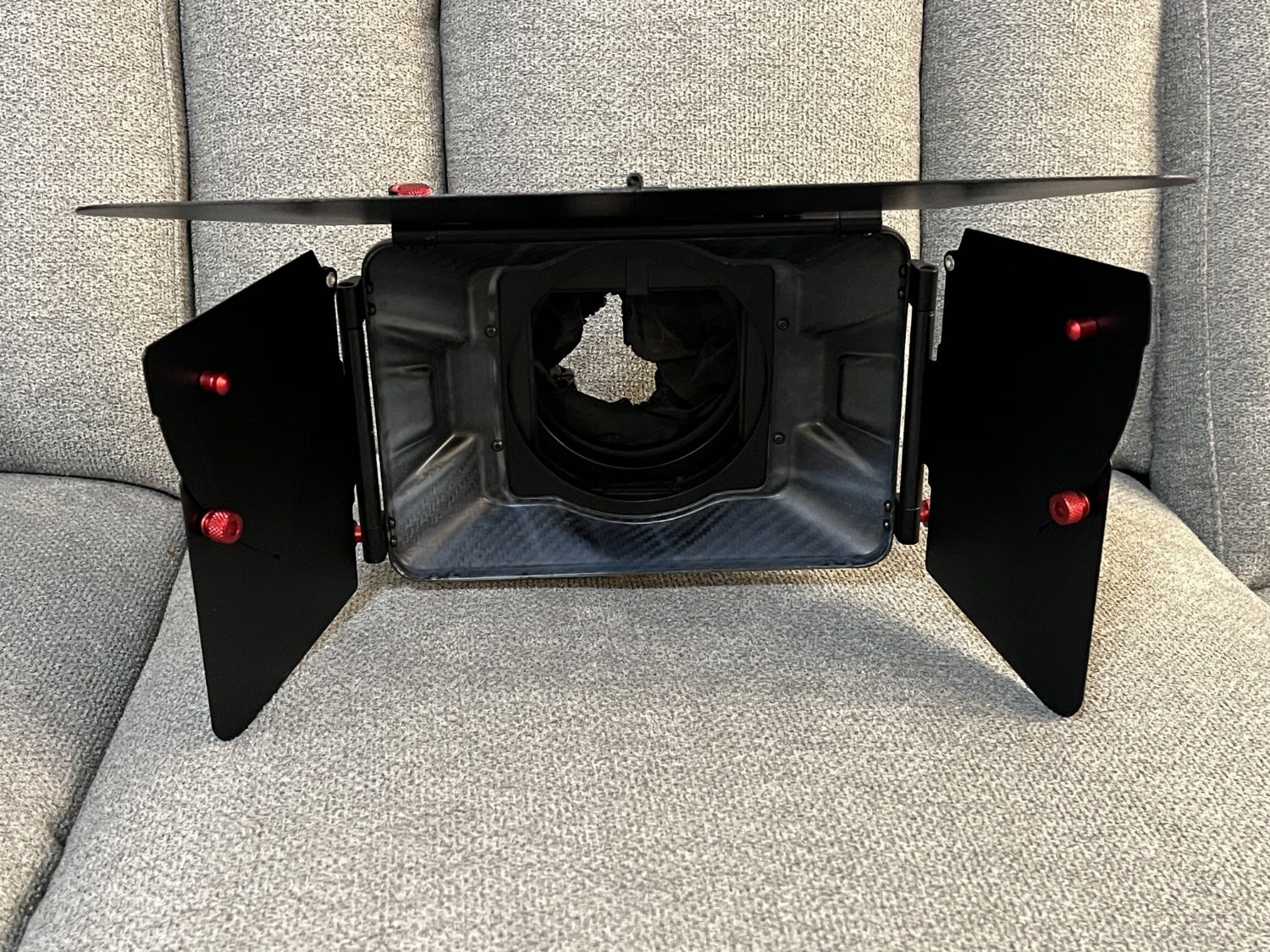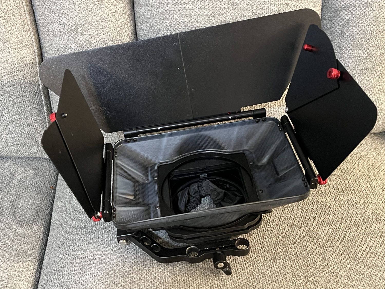 This is an important piece of kit for videographers. This is a must have for any camera kit. The Matt-Box removes flares and glare off the lens for controlled shooting.
