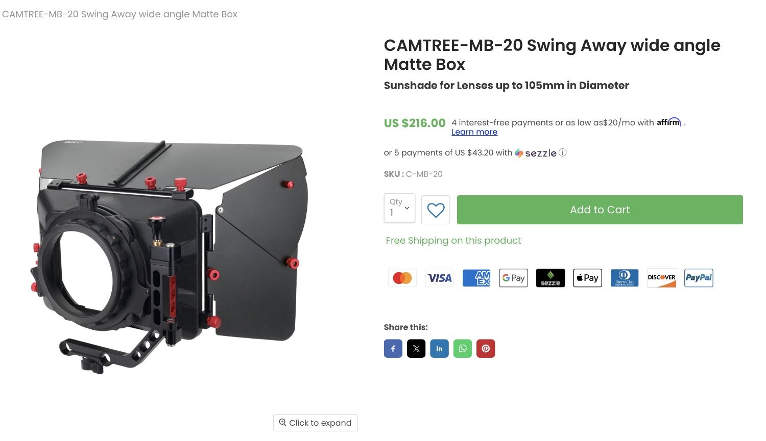 VenmoCAMTREE-MB-20 Swing Away Wide Angle Matt-Box