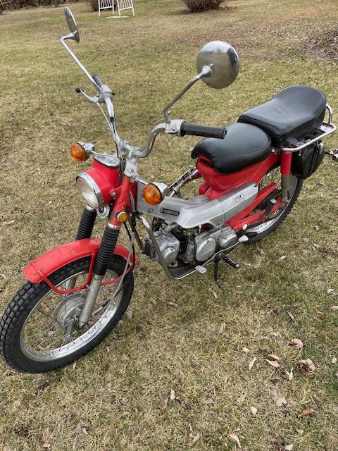 ApplePayVery Rare 1969 Honda Trail 90 motorcycle. Excellent condition. 7360 actual miles. Just had the engine rebuilt. Now is 110 cc's. New tires, new battery, Seat is in excellent condition. I have the owners and service manuels. Free new helmit included. I had it mechanically restored and was getting ready to paint it. I am getting too old and unsteady to ride.