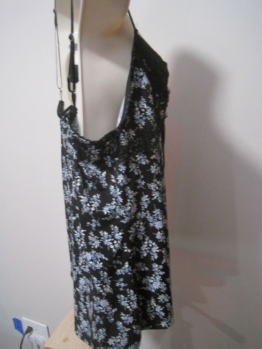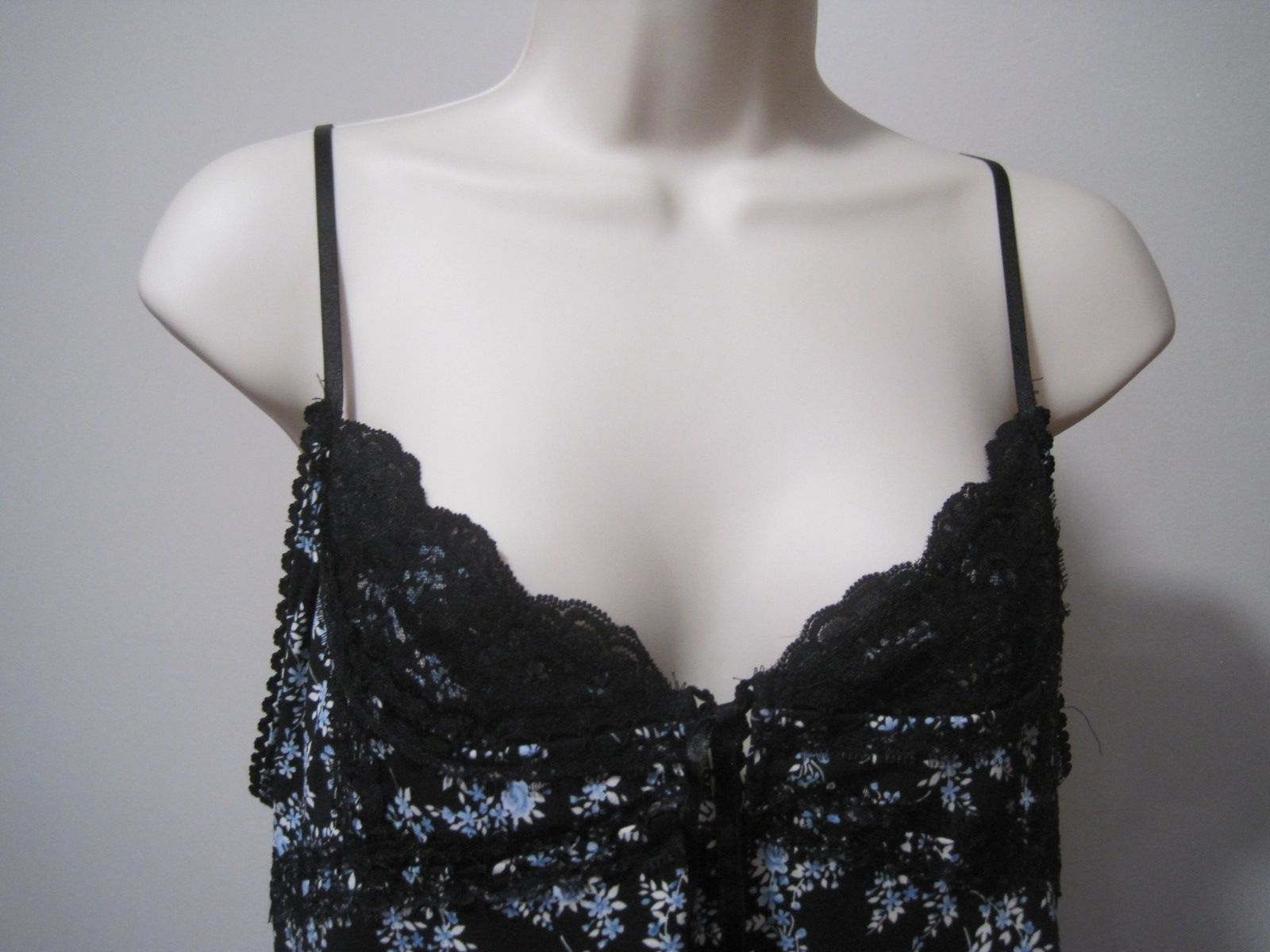 The No Boundaries Women’s Camisole in size medium features a black floral lace design with a ribbon string detail. Made of polyester and spandex, this lightweight and stretchy camisole is machine washable. It has adjustable straps and a tagless design for added comfort. Perfect for everyday wear, this tank-style camisole combines style and functionality, making it a versatile addition to any wardrobe.
