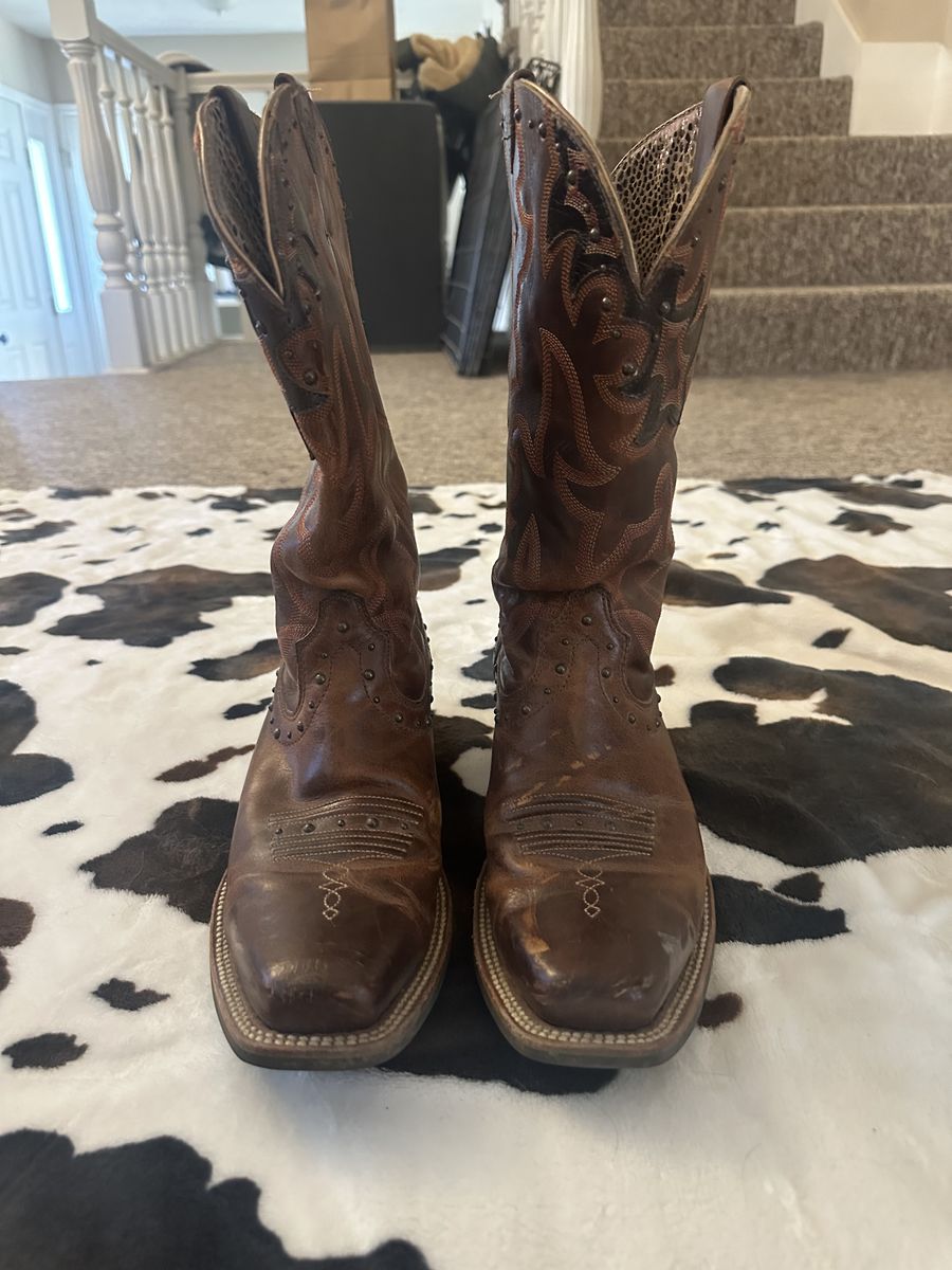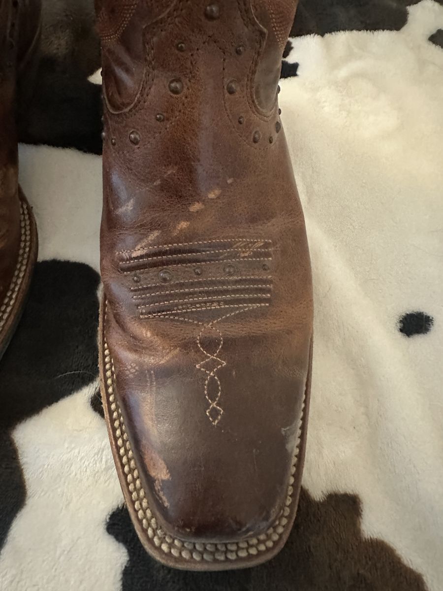 Size 9M. Only worn a couple of times but they got scuffed up and a little shaped out weird because being in a moving box