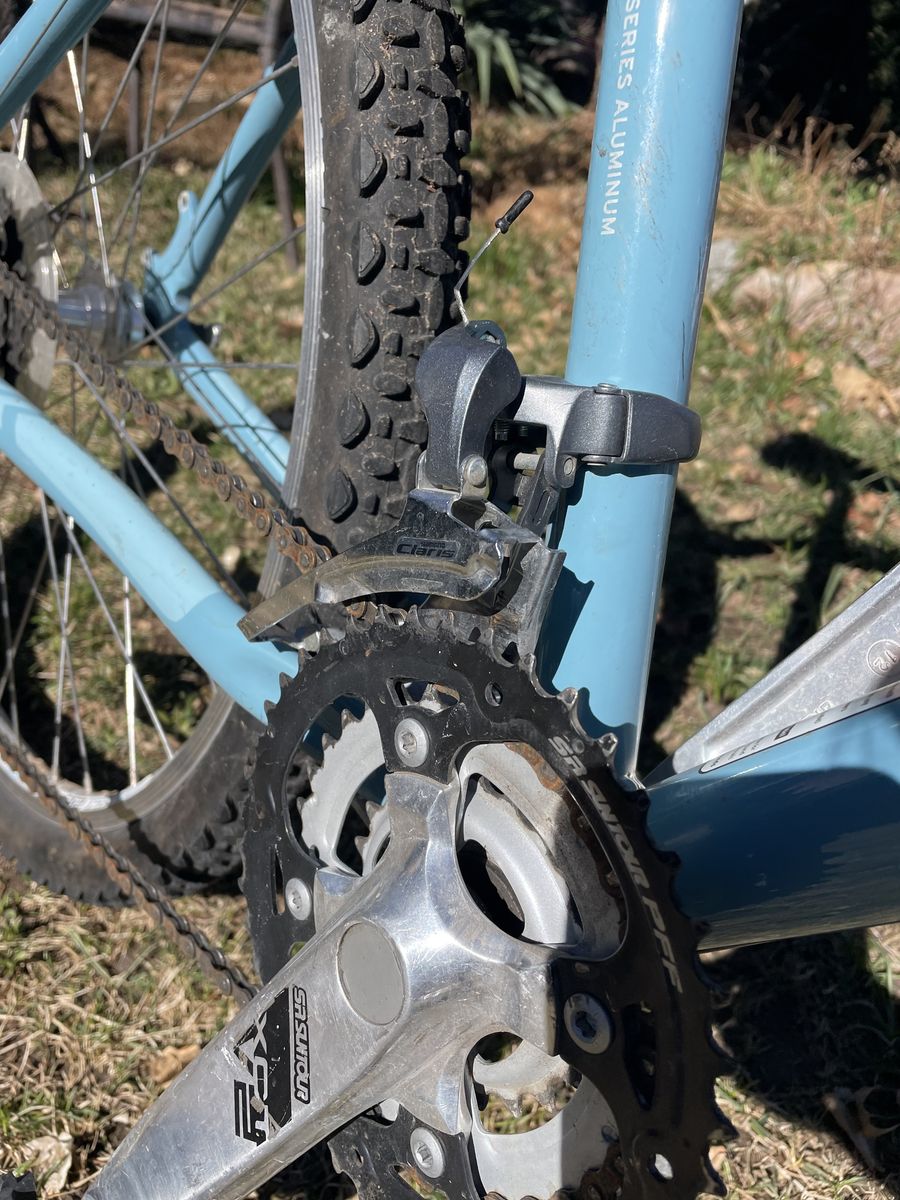 VenmoSize Medium women’s aluminum hybrid bike in good condition. 12-speed thumb shifters, Shimano parts. Front shocks. Great for road or gravel.