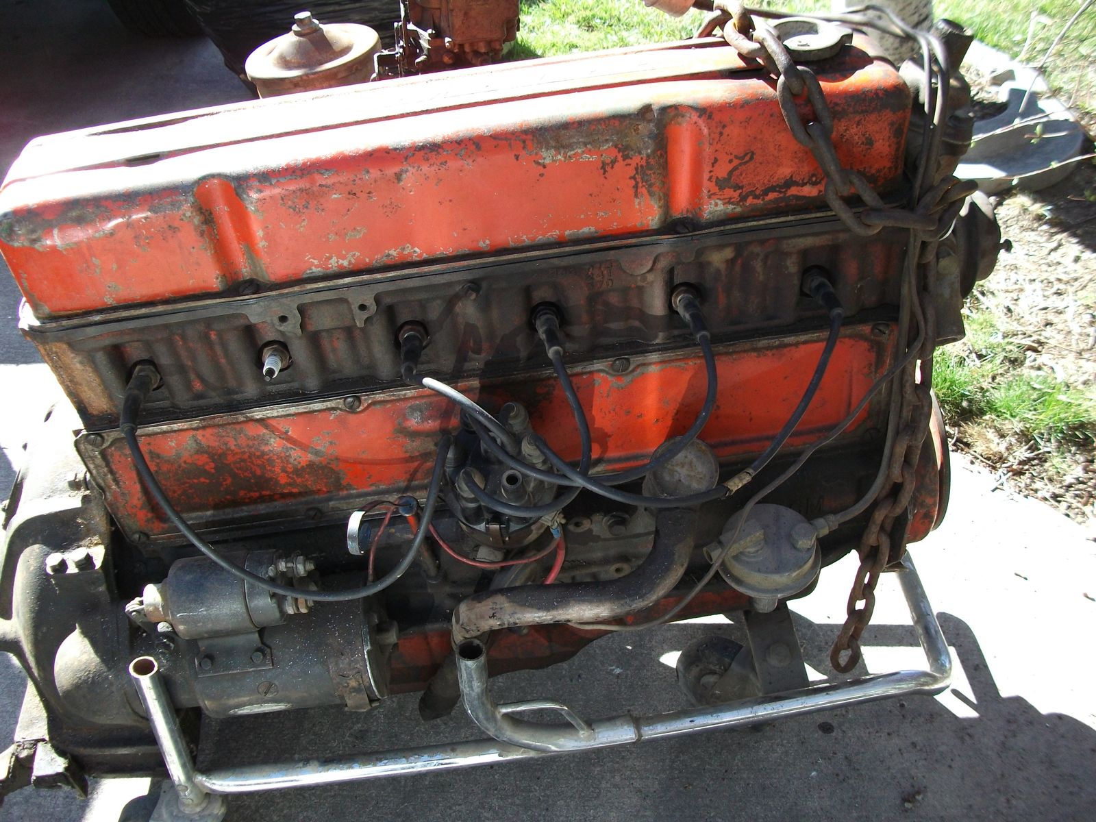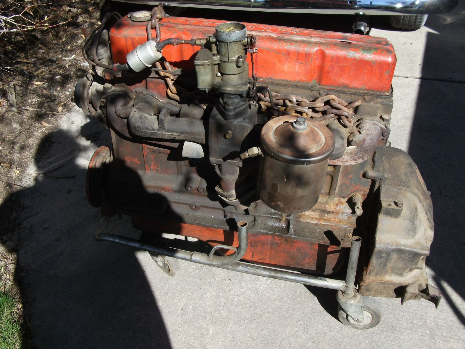 Chevy 235 engine that my son aquired with a car he purchased and we have no plans to use this engine. I believe it is a 1954 block casting 3535911, engine #08I9904 F54Z. Spins freely and mostly complete but I don't know its history. Sold "AS IS". as shown in pictures $250.00. Sorry, I do not receive text messages, phone calls only 801-255-7192