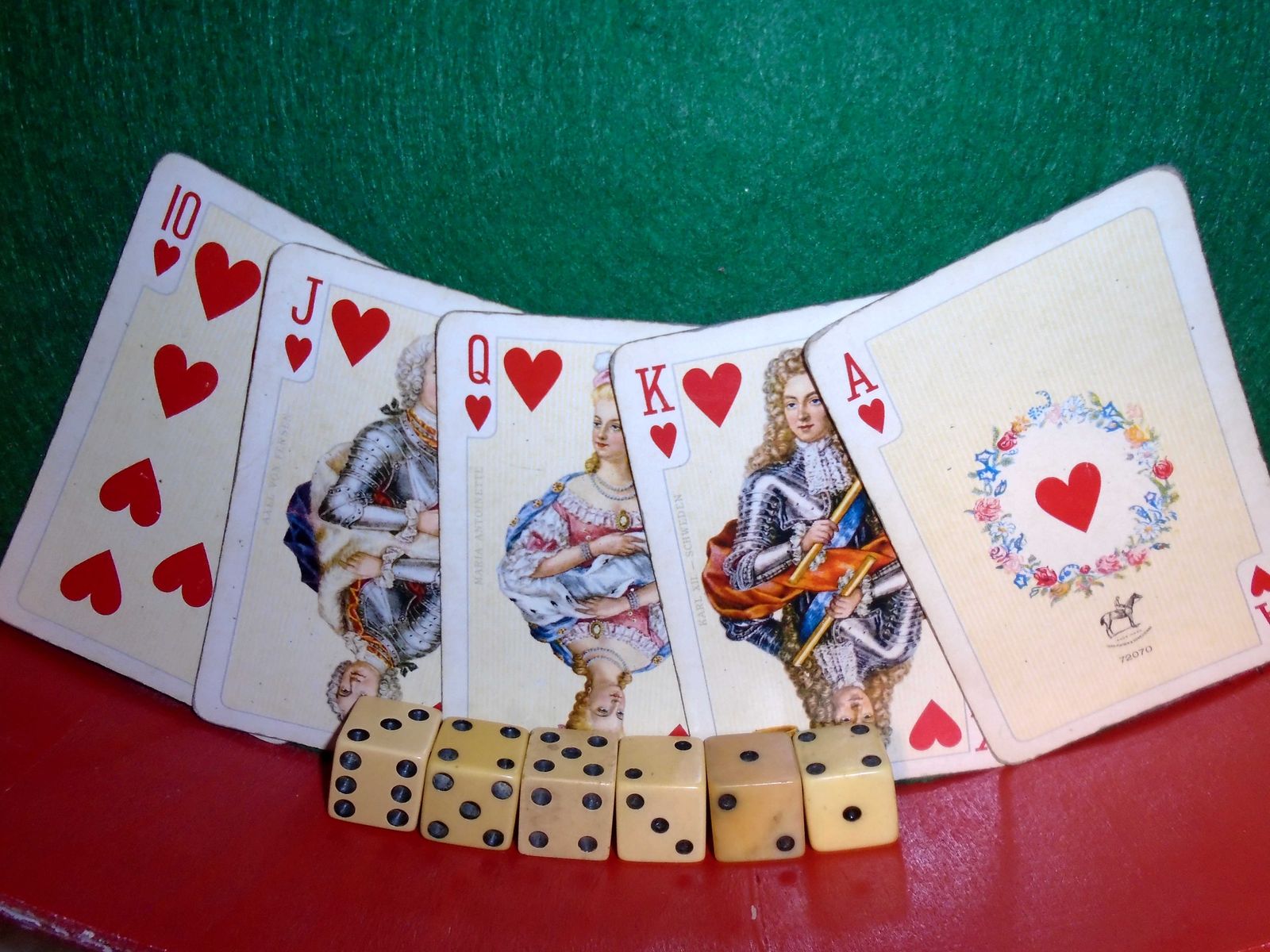 Now the next player takes the dice and proceeds in the same manner and so on until all players have had a turn. The one with the lowest score is the winner and collects the pool. In the case of ties it is played off by the players tied and should a player turn all numbers down they are paid DOUBLE by the loosing players.