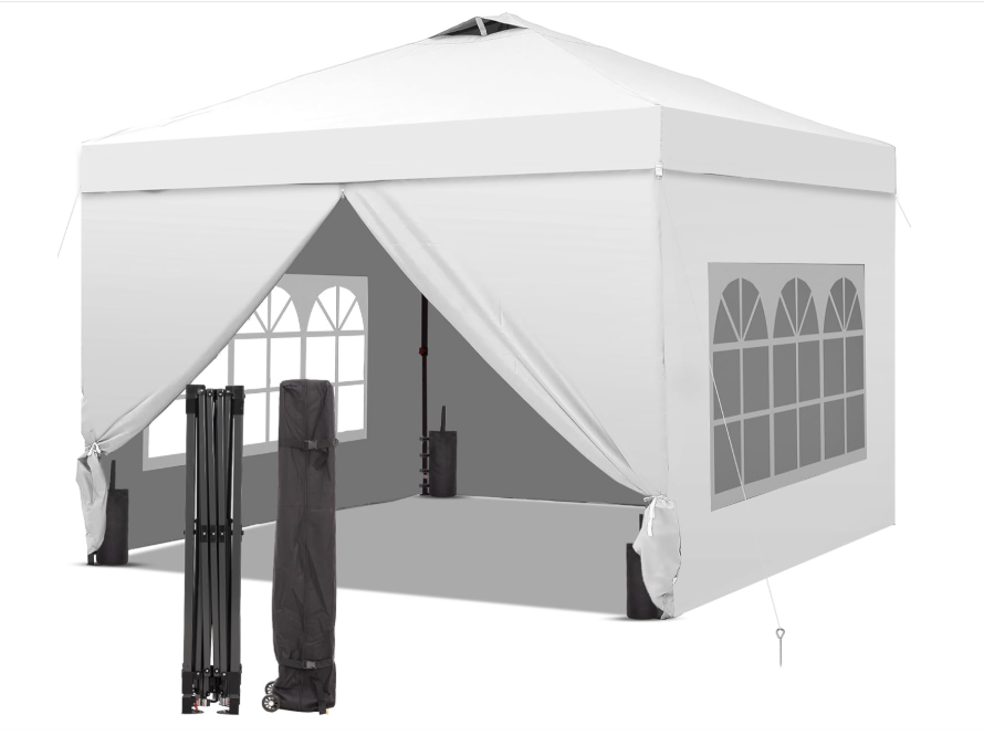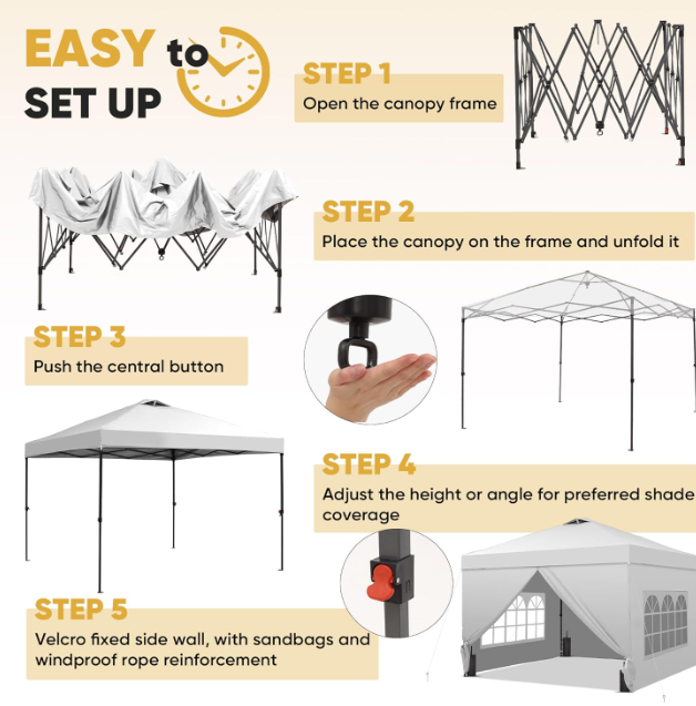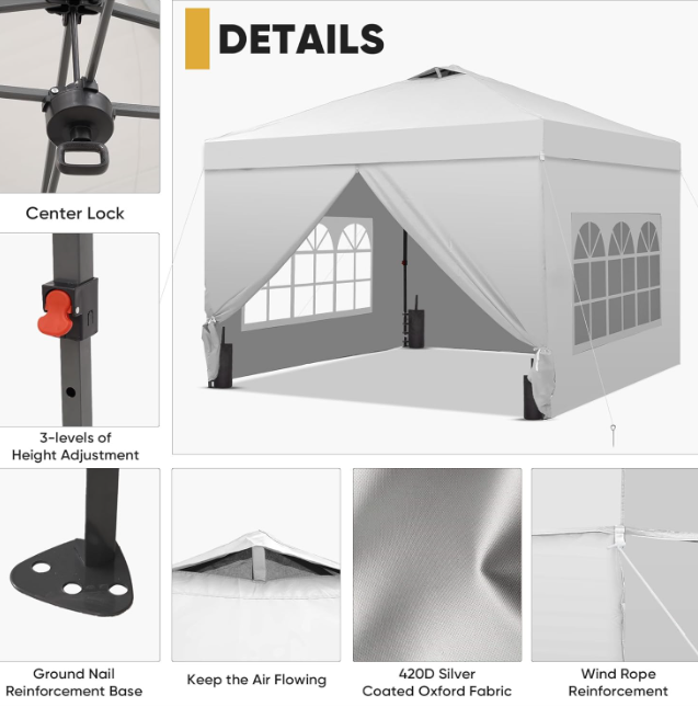 ZelleUV Protection and Waterproof: This basic 12x12 ft (approx. 3.6x3.6 m) quick-setup outdoor tent lets you enjoy the outdoors without fear of harsh weather. The tent cover is made of premium 420D Oxford silver-coated fabric, specially reinforced to withstand extreme weather conditions. It's not only waterproof but also effectively blocks 99% of harmful UV rays.