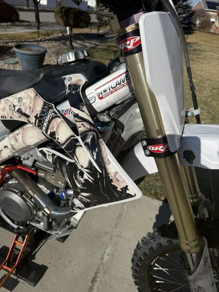 Zelle2005 CRF450R with over $4,000 Extras Very good running 2005 CRF 450R. I have Utah title. Engine work done by Honda World. Has many extras including: Hot cams, bash guard, front and rear Warp9 wheels and hubs, TM design works, brake rotor, rear brake and chain protectors, Warp9 oversized foot pegs, Tusk kickstarter, Yoshimura RS-2 full pipe set, chain sprockets set, SDG seat cover, moto hose, Turner gas cap, ASV clutch and brake handles and perch, Scott stabilizer with BRP triple clamp, Protaper handlebars…. No trades or lowball