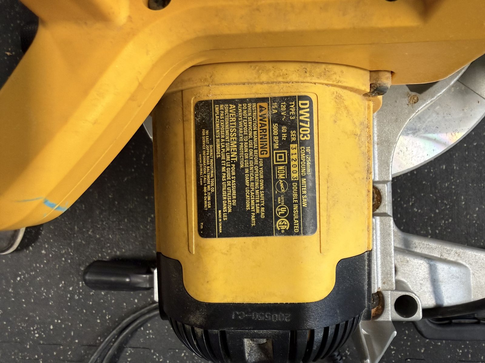 VenmoDeWalt 10 Compound Miter Saw DW703. Works great.