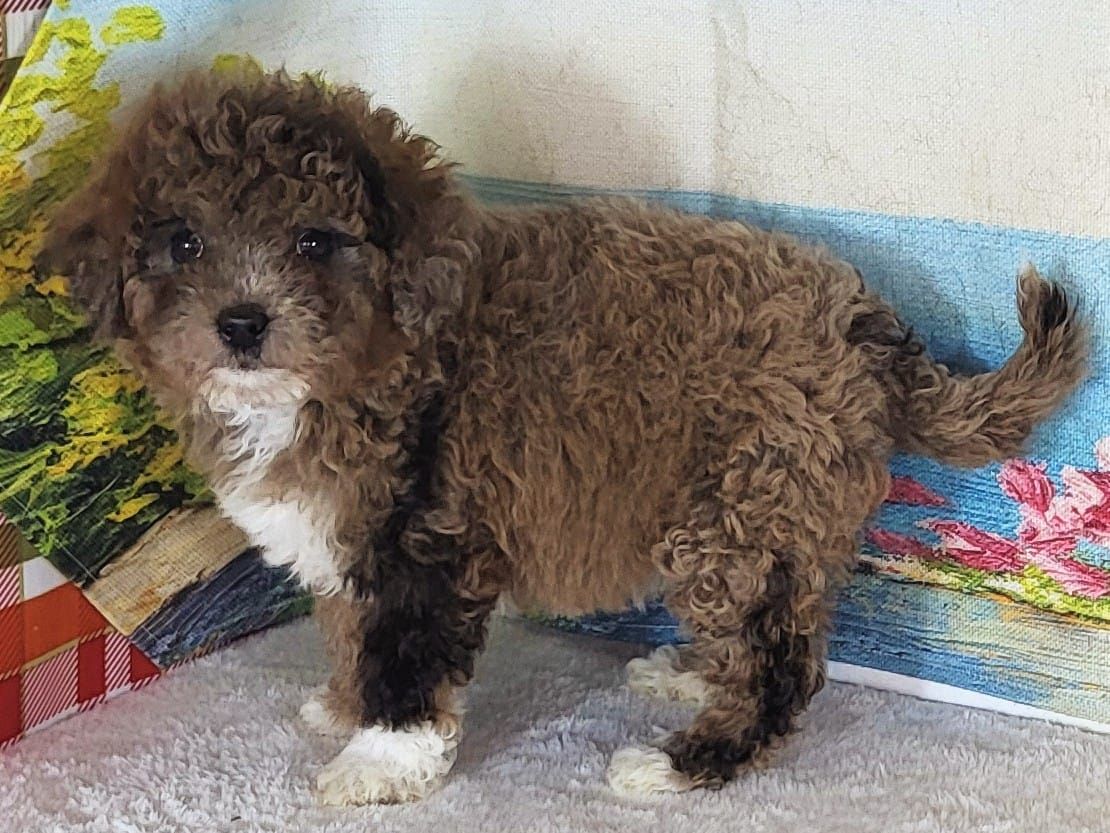 ZelleKiwi is a beautiful Micro Goldendoodle girl with a soft, curly coat and a sweet, gentle personality that makes her easy to adore. She loves being close to her family and has an affectionate nature along with a playful and curious spirit. Whether she is exploring her surroundings or cuddling beside the people she loves, Kiwi brings joy and warmth wherever she goes.