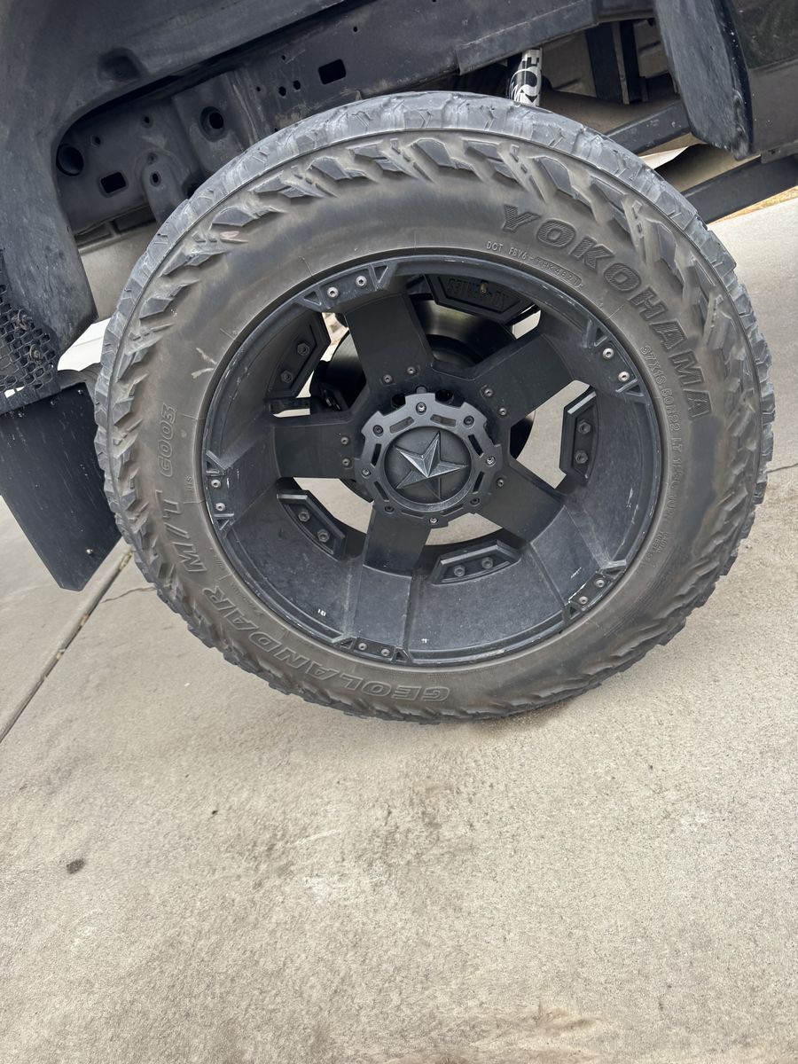 ApplePayGive me an offer Lug pattern: 8x6.5 Size: 22x12 A few small scratches nothing really noticeable, no curb rash. They come with red attachments and center caps as well