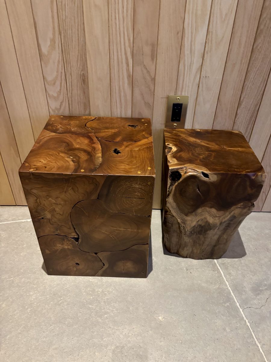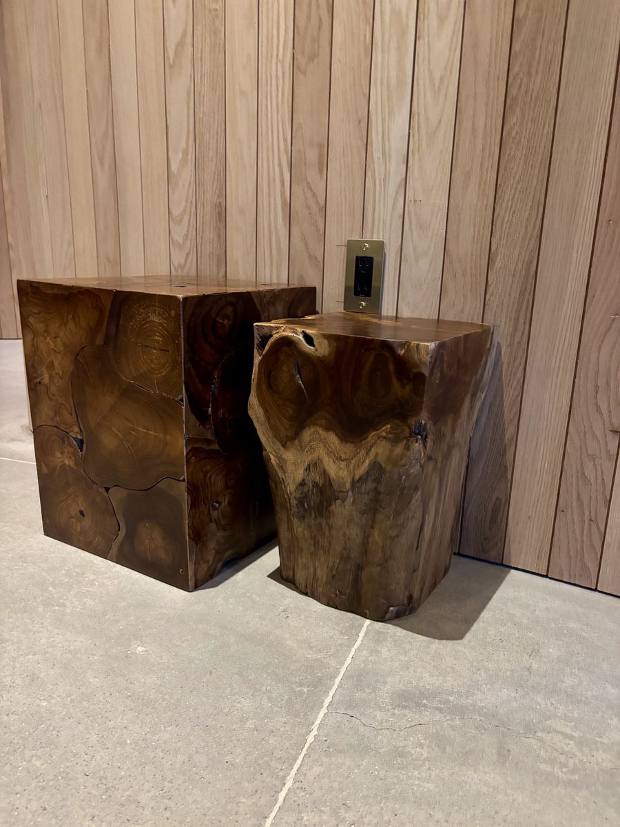 VenmoNew Indonesian Teak Side Table and Stool for sale. Both made of grade A Teak wood. Side table is hollow and stool is solid. Each are beautifully unique with lots of character.