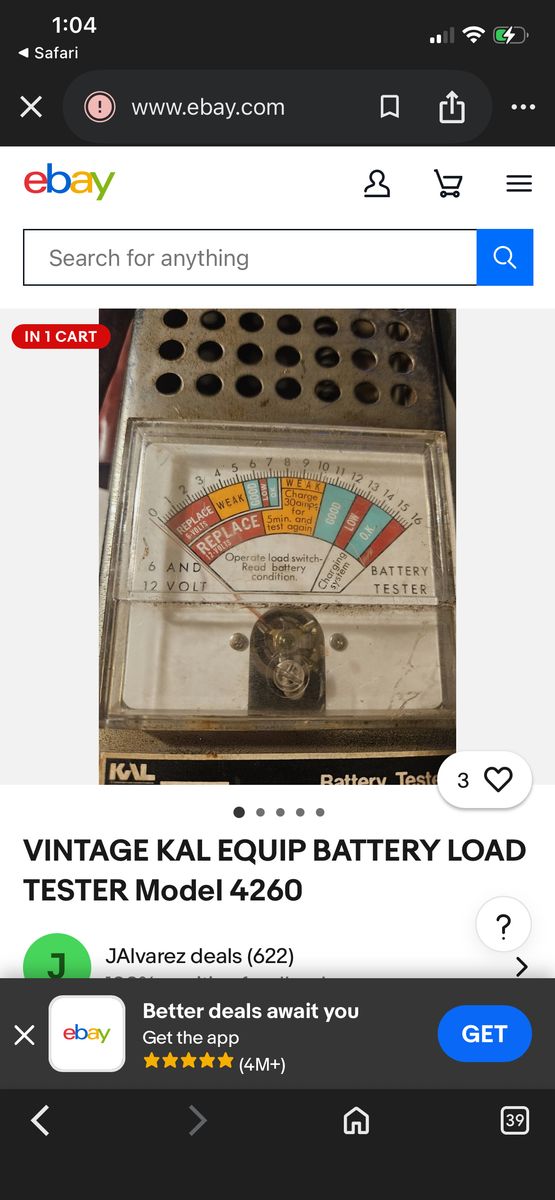 VenmoVINTAGE KAL EQUIP BATTERY LOAD TESTER Model 4260. The Kal Equip Model 4260 Battery Load Tester is a reliable tool designed to test the performance of 12V batteries. Manufactured by Kal Equip in China, this battery load tester provides accurate results to help you determine the health and capacity of your batteries. With its sturdy construction and easy-to-use design, this product is essential for maintaining and troubleshooting batteries in various vehicles and equipment.