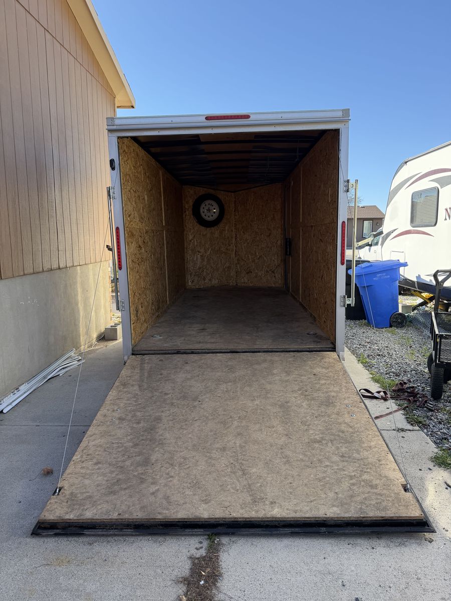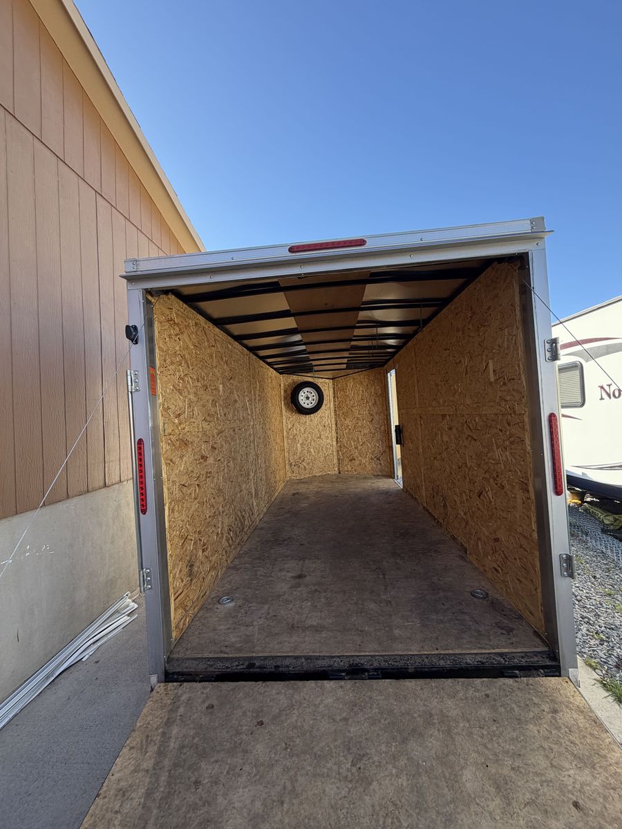VenmoLike New used cargo trailer purchased new in 2019 from dealer. Has been used to haul Honda Rincon and Polaris Razor 3 to 4 times a year, but has mostly sat in fenced yard and storing ATVs. No accidents and all electrtical works, good tires, and comes with a spare mounted inside. 2" or 2 5/16" ball cup, not sure which. Slight bend in right side fender, ( see in pictures). Clear title. No trades please. Will accept reasonable offers. Text for further information or to schedule a time to look at the trailer.