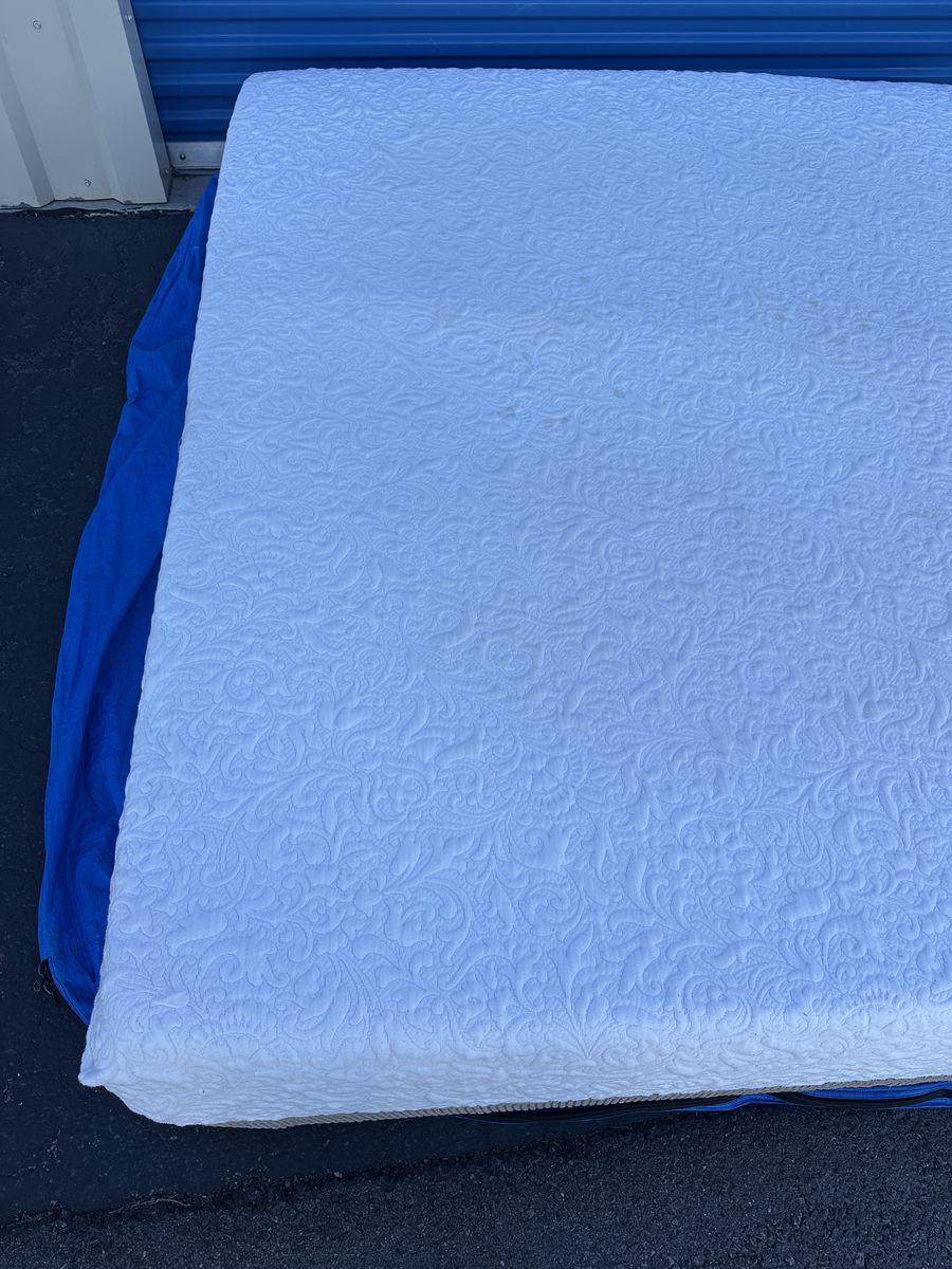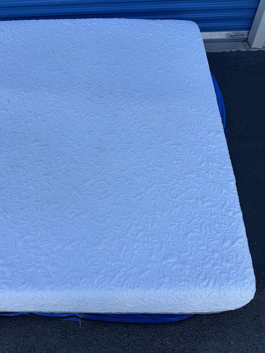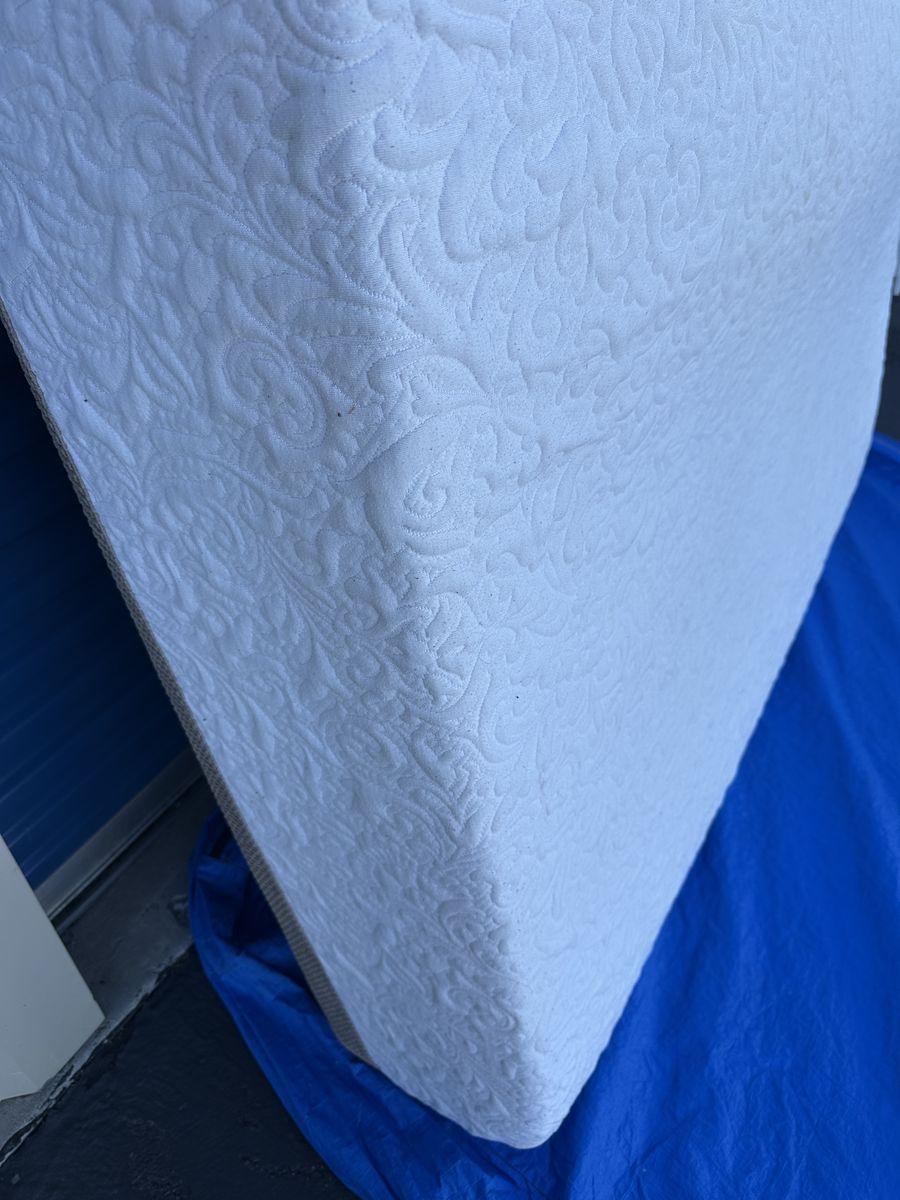 Check out this Serta iComfort king mattress. Overall, it is in really good condition. There are some signs of imperfections, some marks from moving, some noticeable light stains on the front, some signs of use, etc.