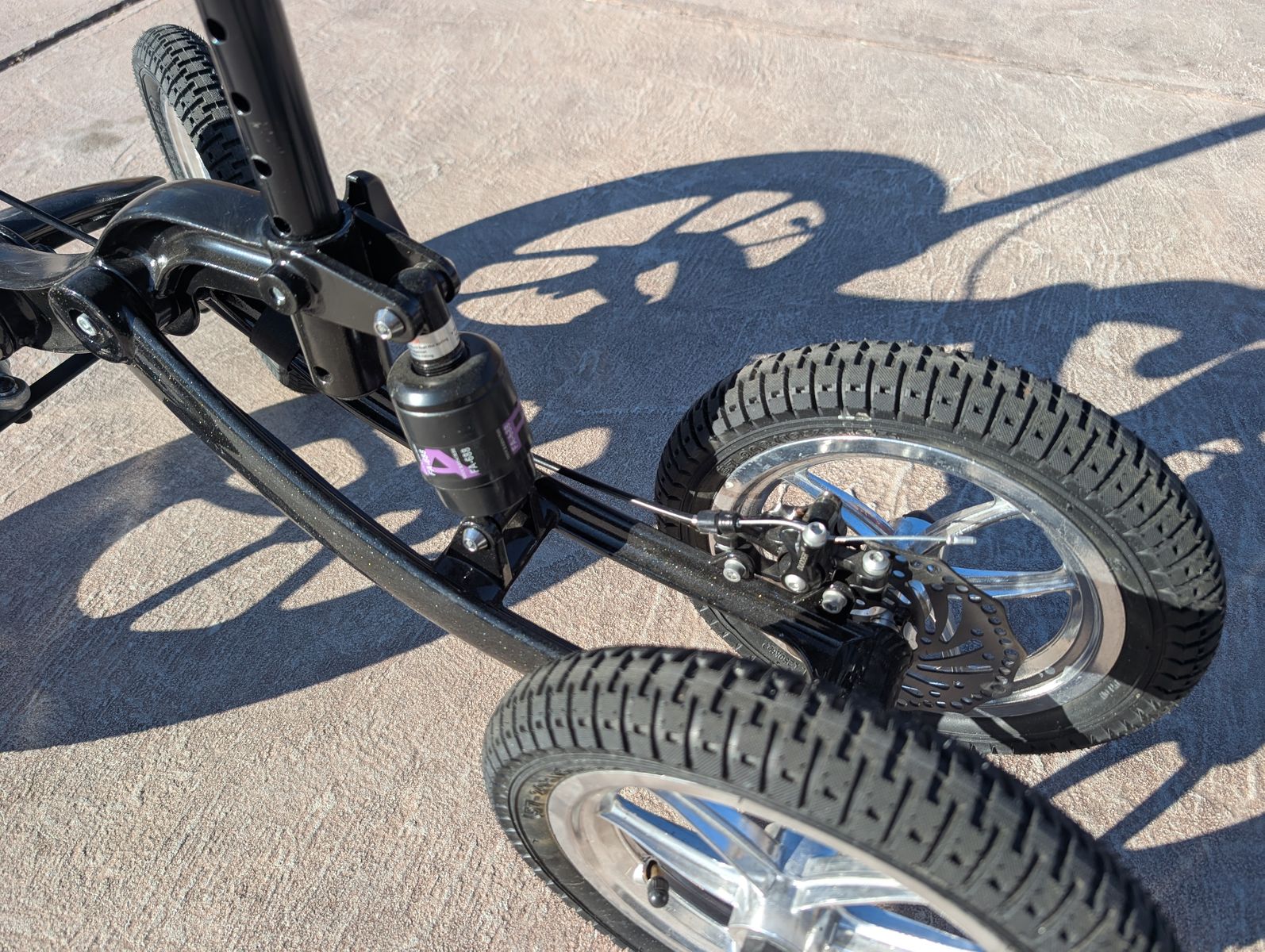 GooglePayKnee and leg roller. Well built with pnuematic tires, shock absorber, and disc brake. Brake handle and thick, contoured supportive knee pad.
