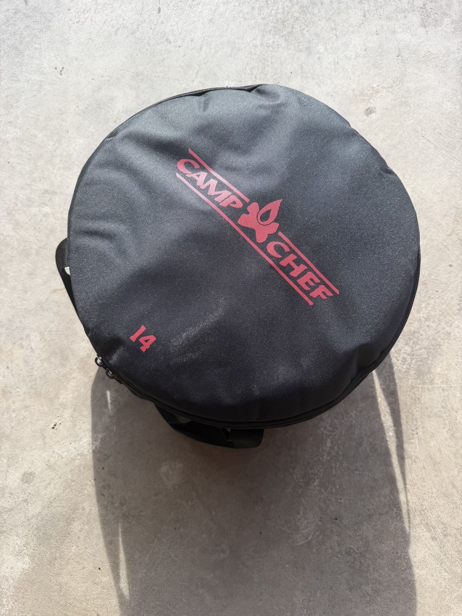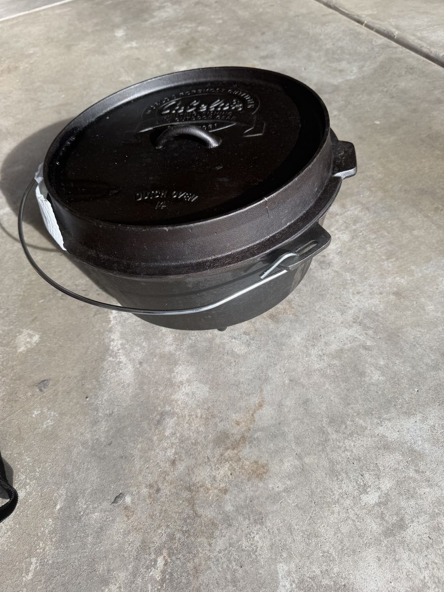 Used one time. Factory seasoned. Three leg camp oven with flat skillet lid. Comes with a like new insulated carry bag. Too big for a couple of old folks to handle. Help us get it out of the way. All for $20. Text is best. 801-209-7687
