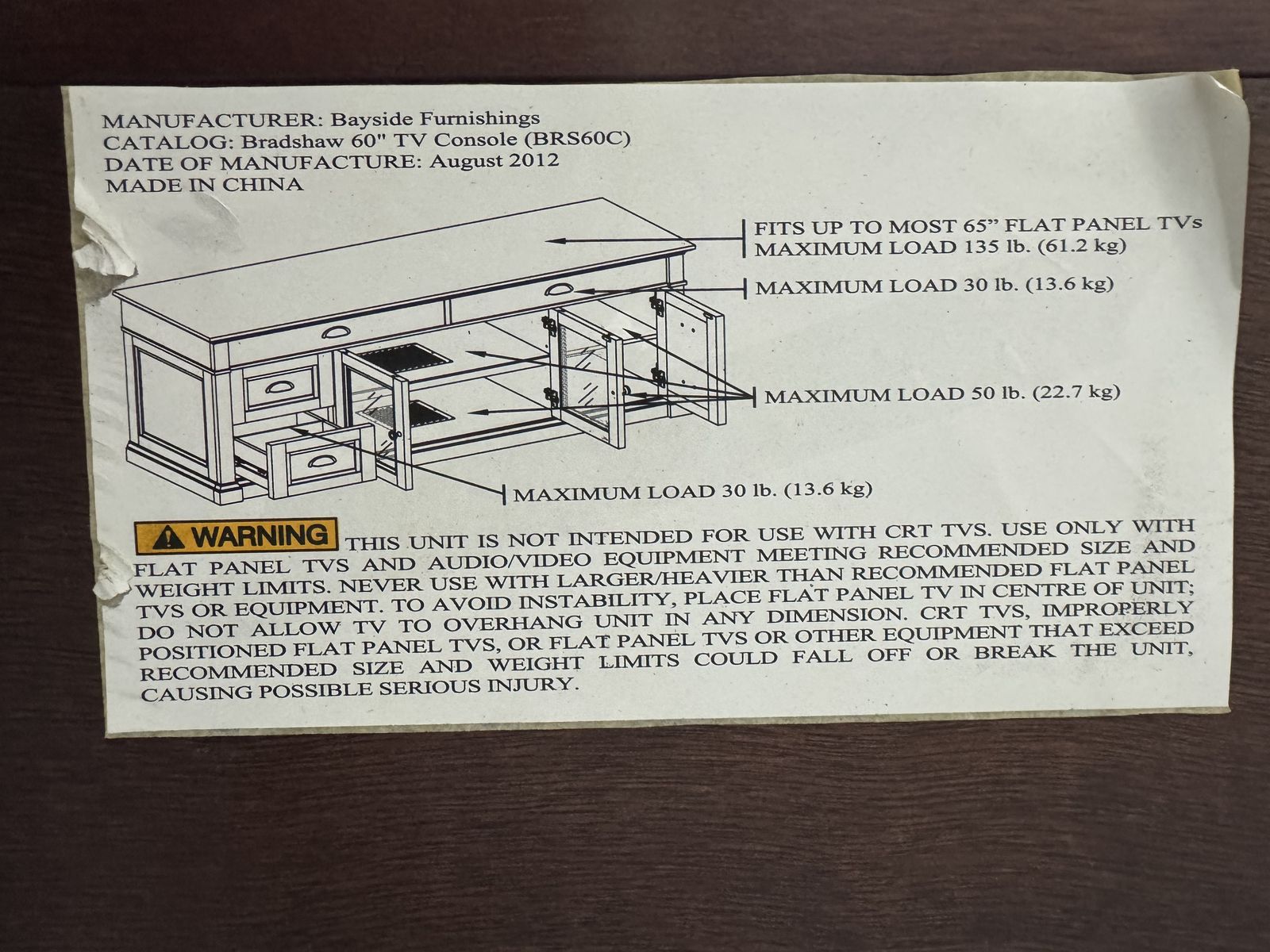 ApplePayBradshaw 60 TV Console (BRS60C). Has a few digs, but otherwise in great condition.