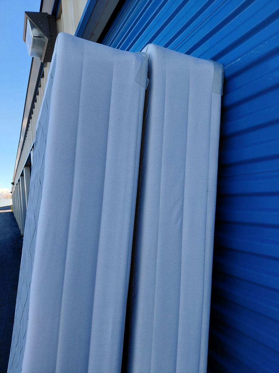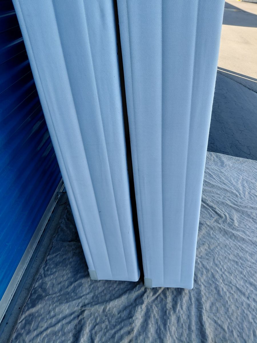 Check out these king box springs. Overall, they are in good condition. There are some noticeable imperfections and blemishes, some marks on the side from moving, some of the material is torn on the back, some visible signs of use, etc.
