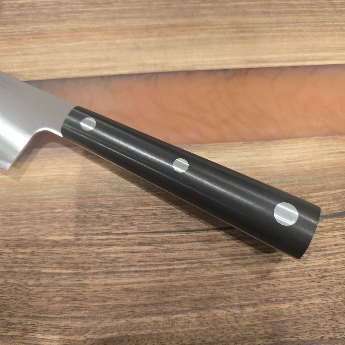 Full‑tang knife made from forged steel with a carbon content above 0.60% (Molybdenum–Vanadium), featuring a black dishwasher‑safe Polyoxymethylene (POM) handle. The blades are tempered and ground for greater edge durability.