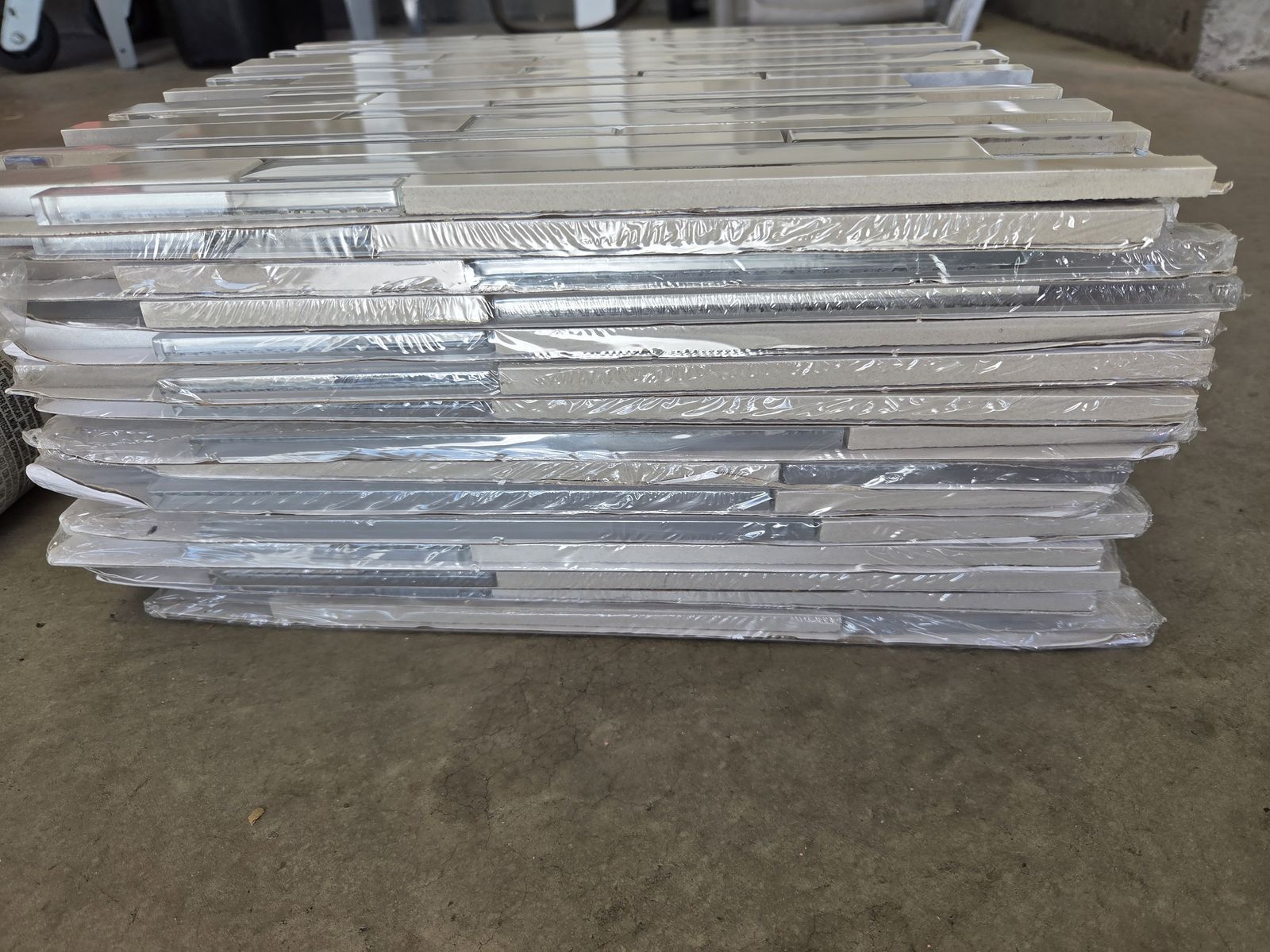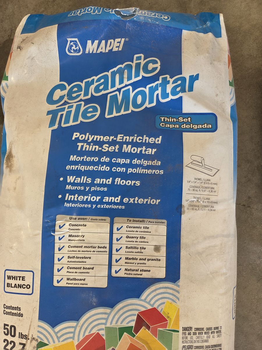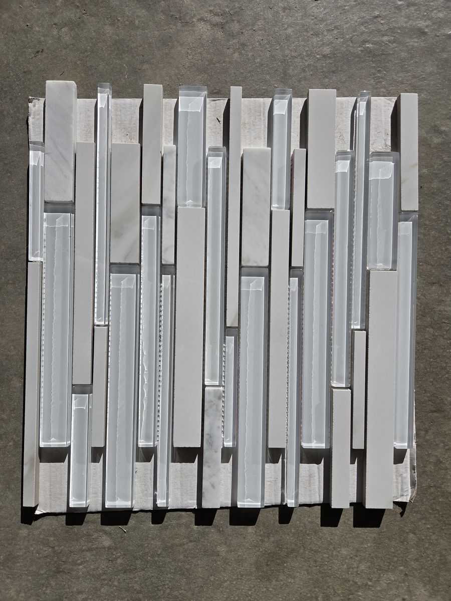 13 sheets of white tile backsplash. Includes the morter and grout needed to install.