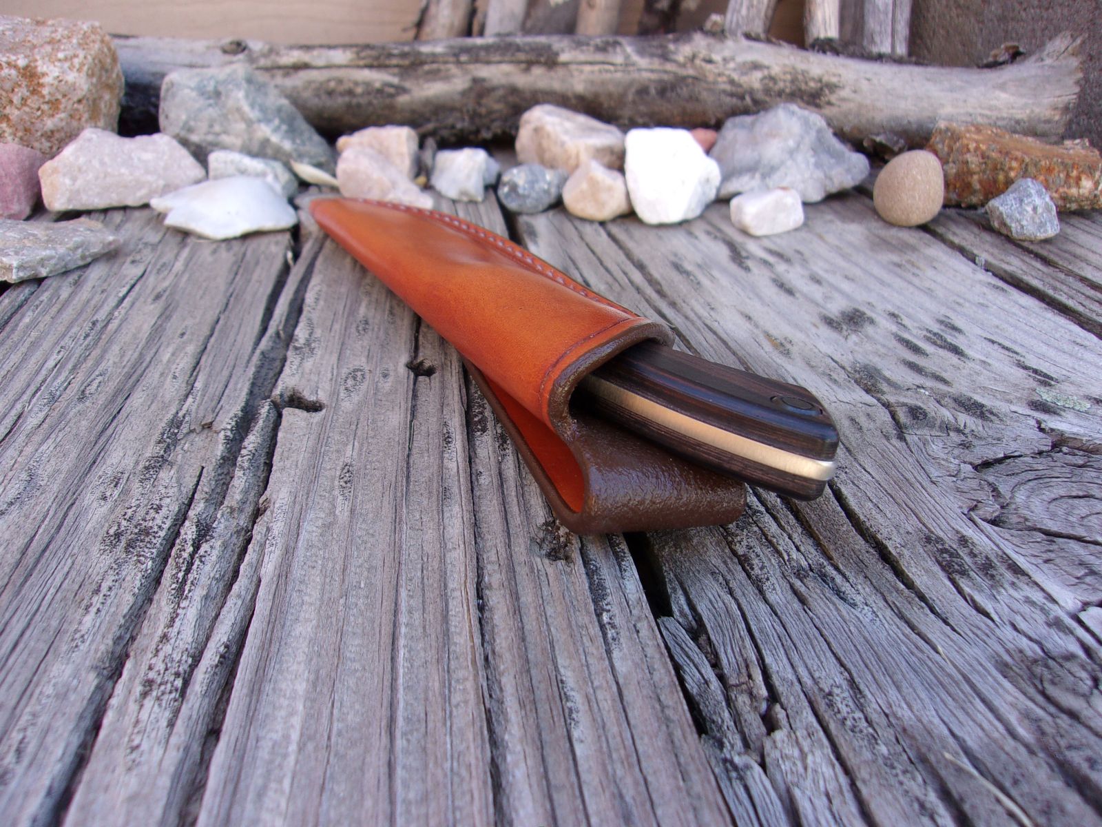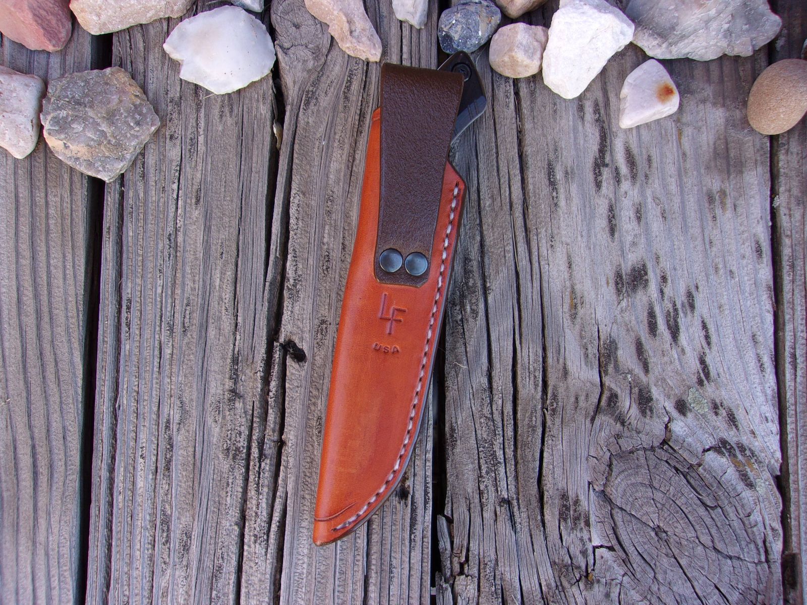 The LF Custom Leather Secure Fit Pouch Sheath is made with 8-10 oz. Leather that is "hand" cut & "hand" sewn using a “saddle stitch” for increased strength & durability.