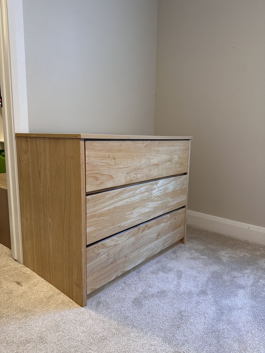 VenmoThese bunkbeds can be configured in different ways shown in an attached picture. When a bed frame is on the highest rungs, the three drawer dresser can fit underneath it and have the drawers open.