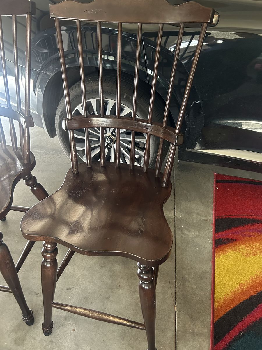 24 inch tall, at widest part of seat, 19 inches. Cherry wood BAR STOOLS, have been used but are clean and come from smoke free home. 3 total.
