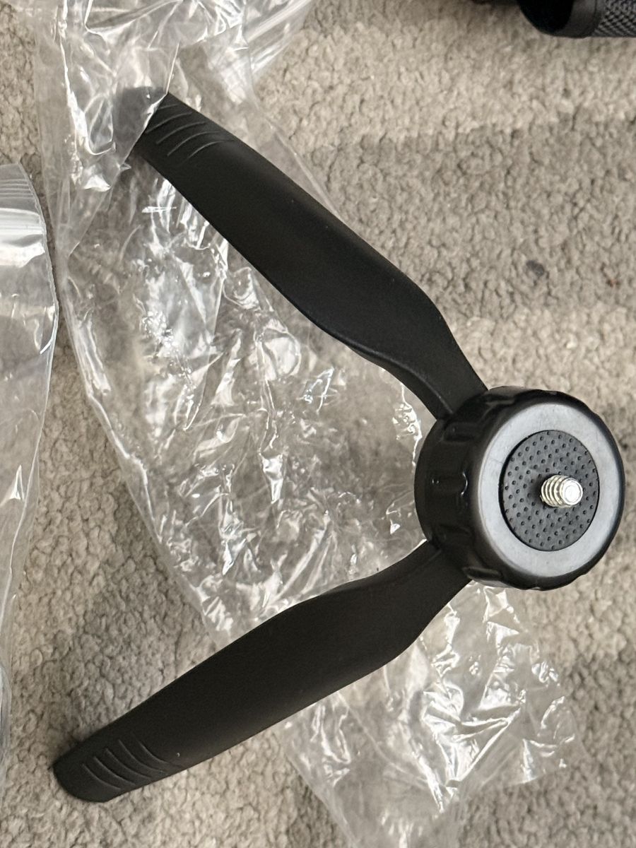 Has a phone scope style clamp, mini tripod, swivel attachment.