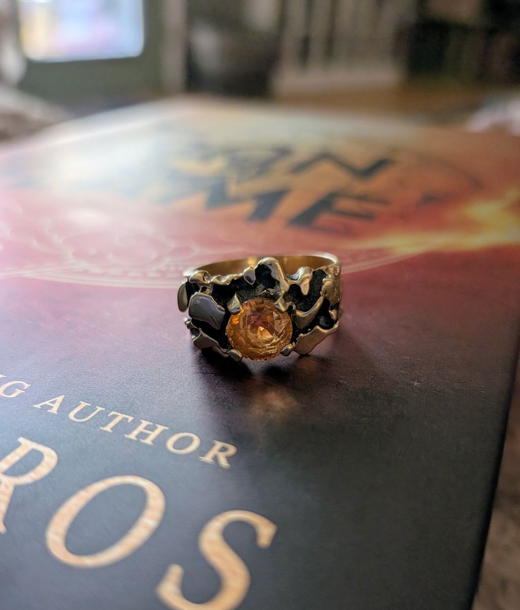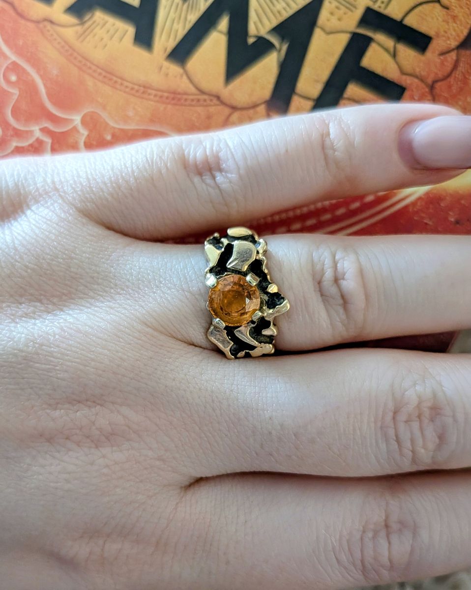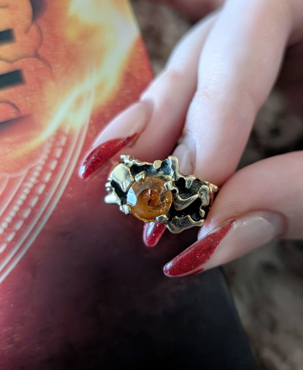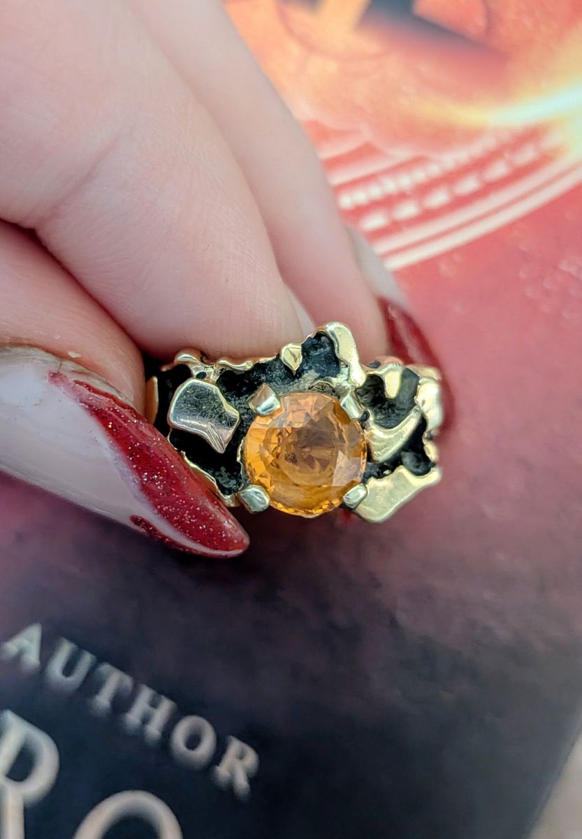 Custom made vintage fire citrine 14 carat black gold ring. Aprox size 7