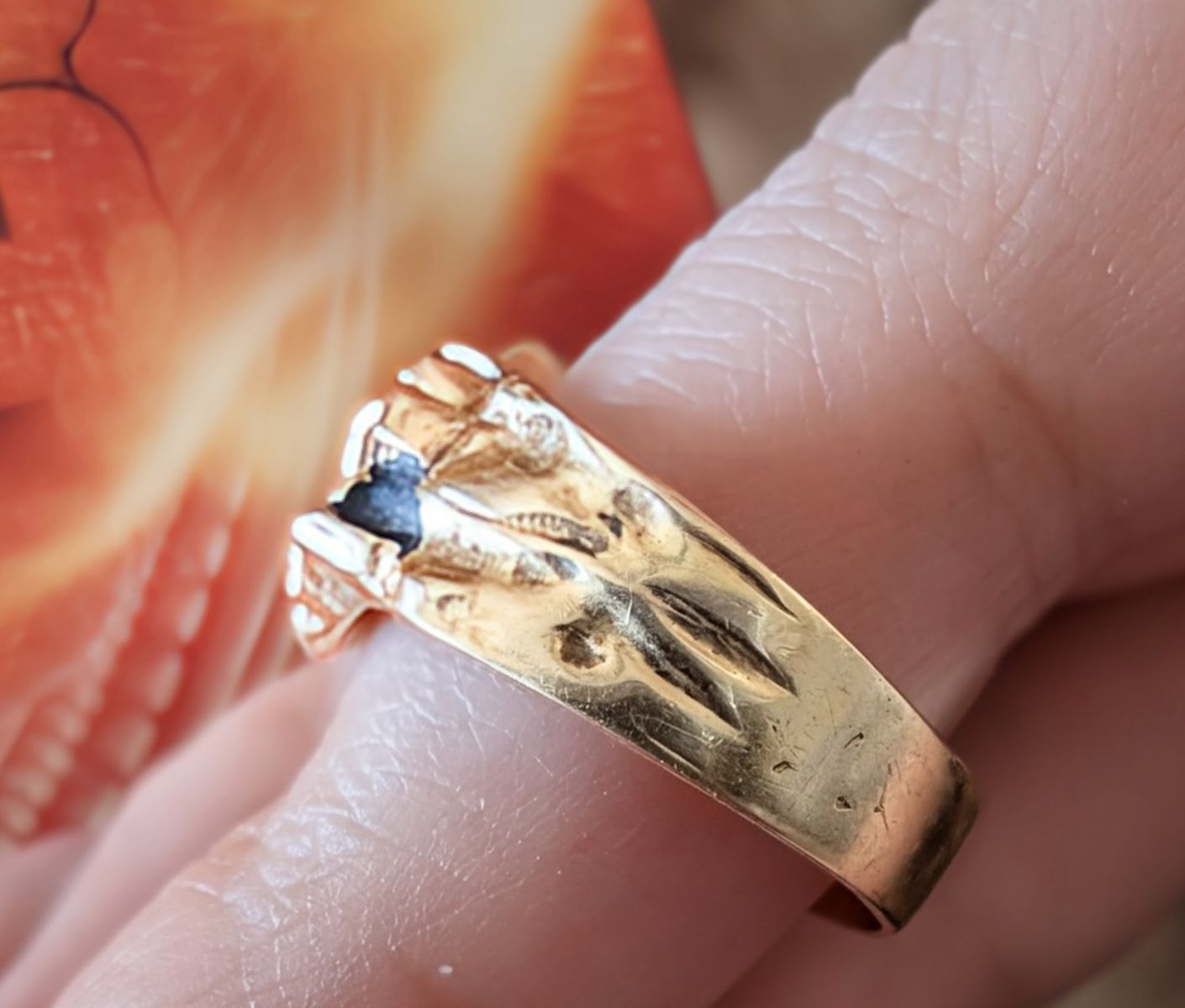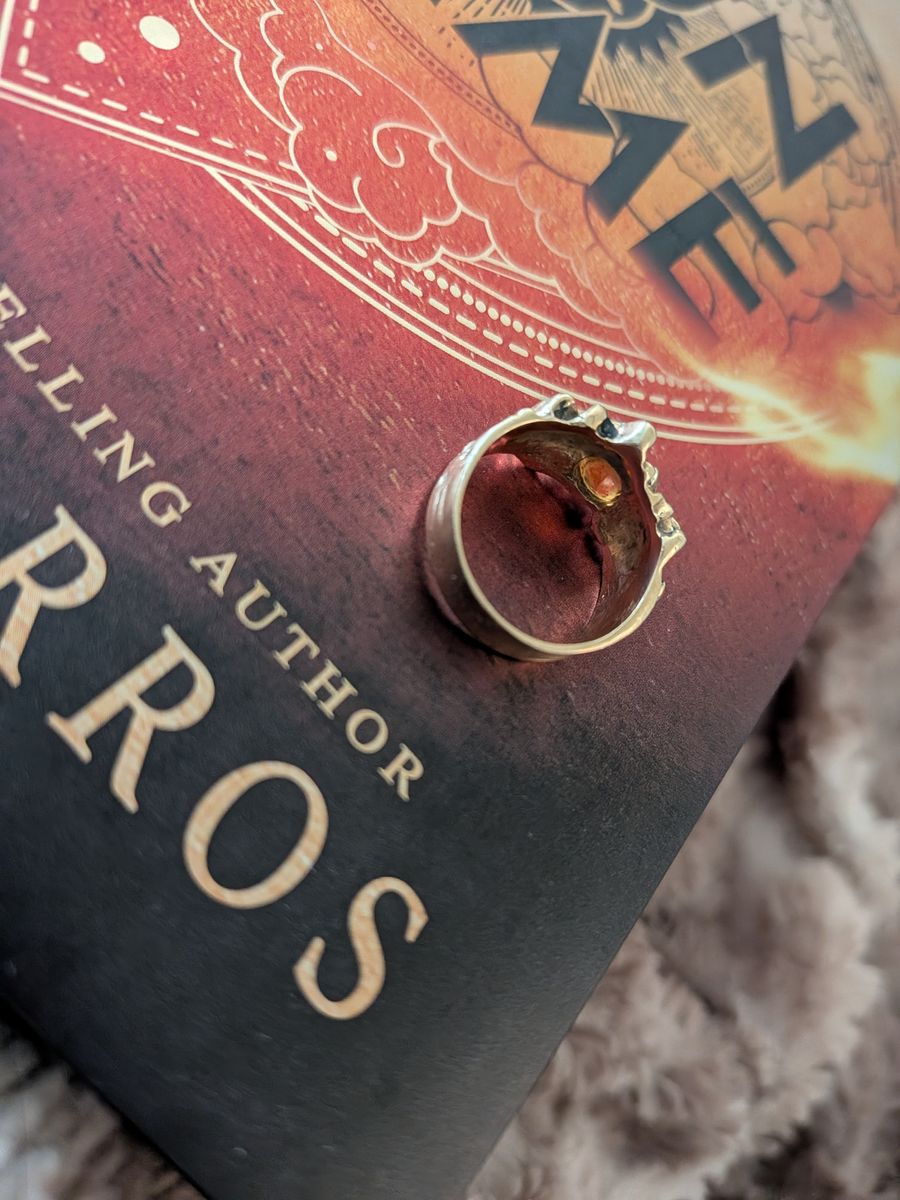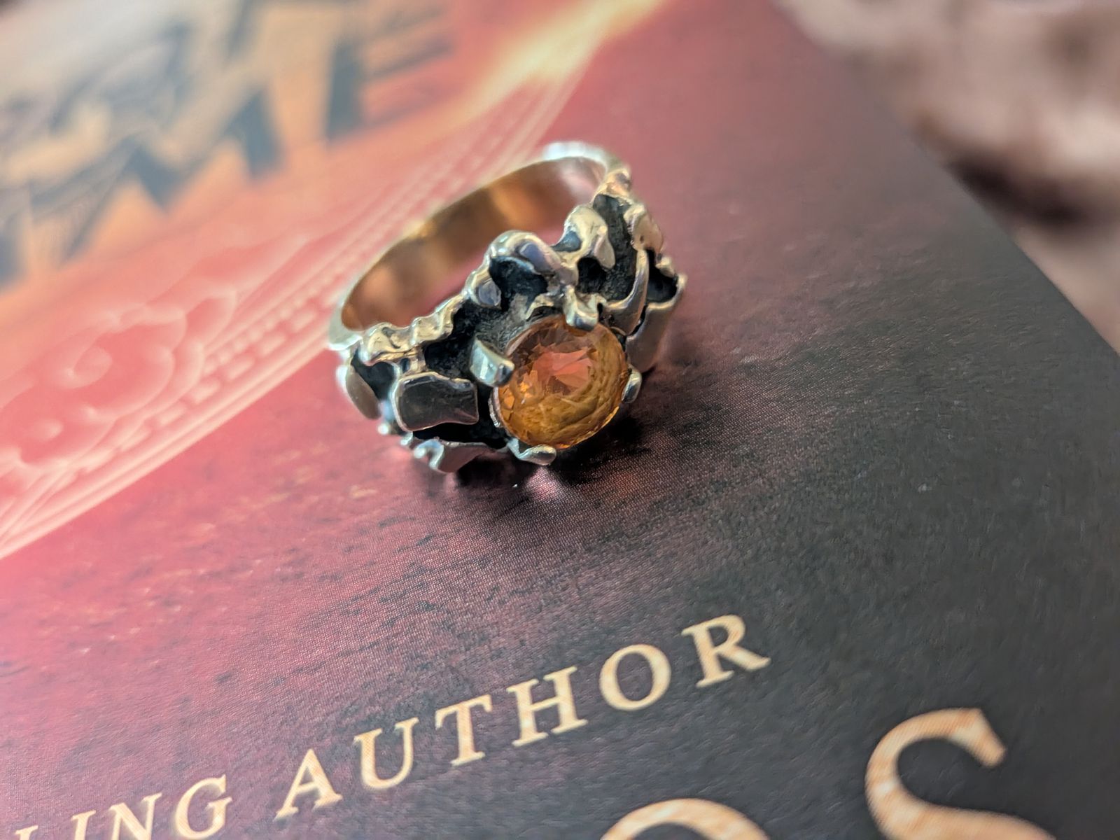 Custom made vintage fire citrine 14 carat black gold ring. Aprox size 7