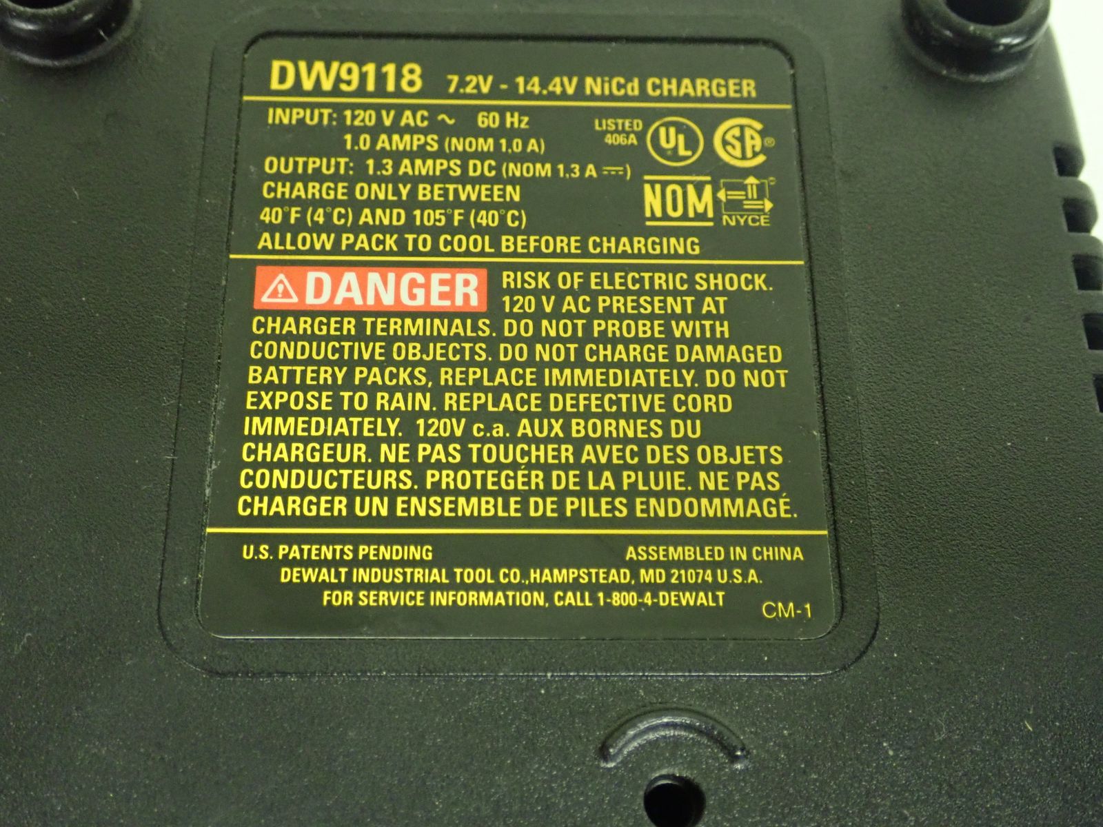 • 1 x Genuine DeWALT DW9118 Battery Charger (7.2V–14.4V, 1.5A, NiCd)