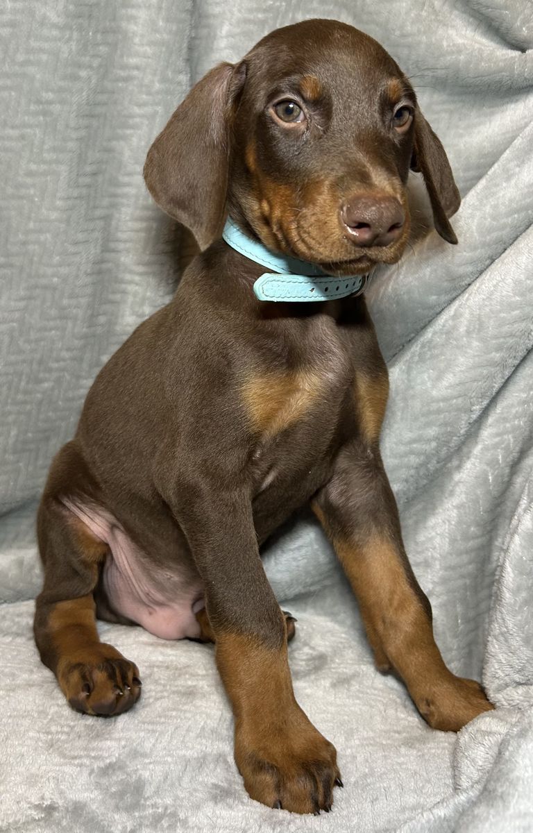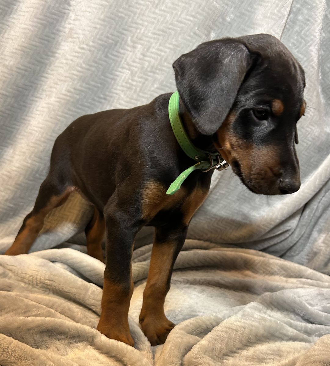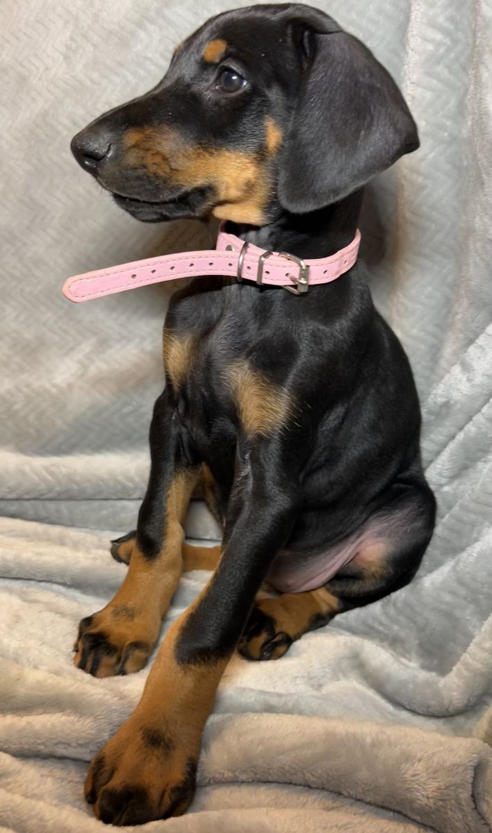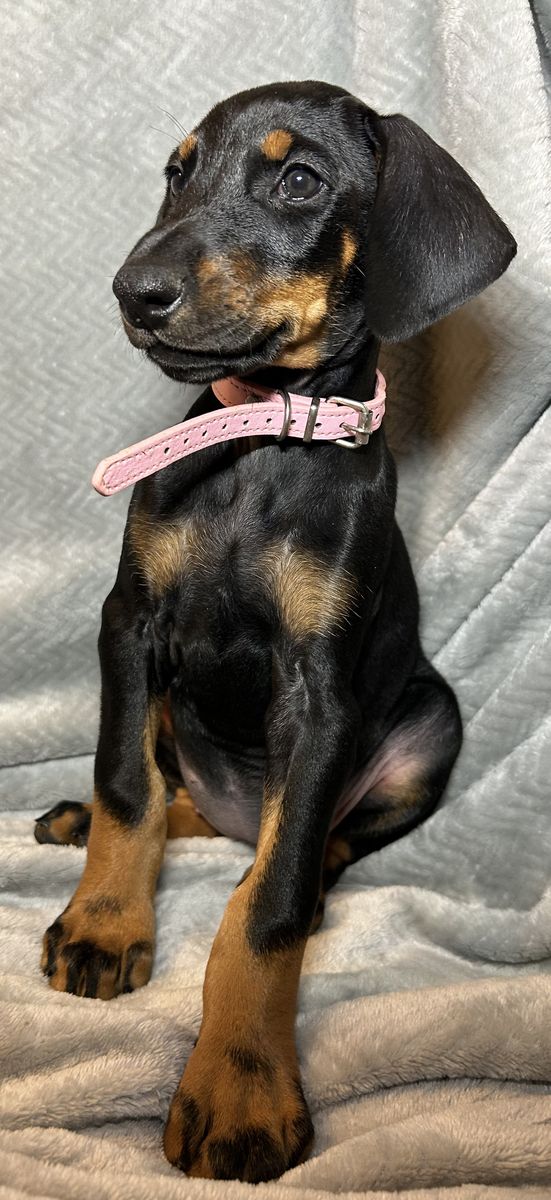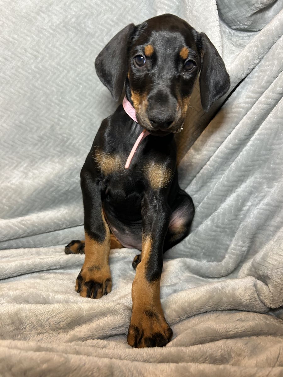 Both parents are health tested. Mom Raya is a blue Doberman and dad Riggs is a black & tan Doberman.