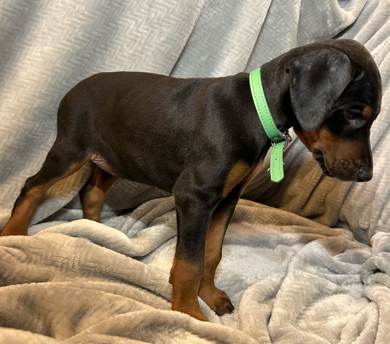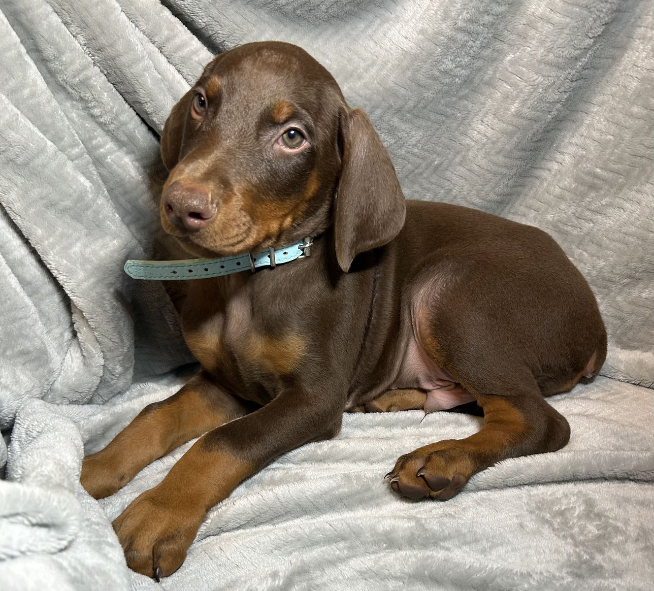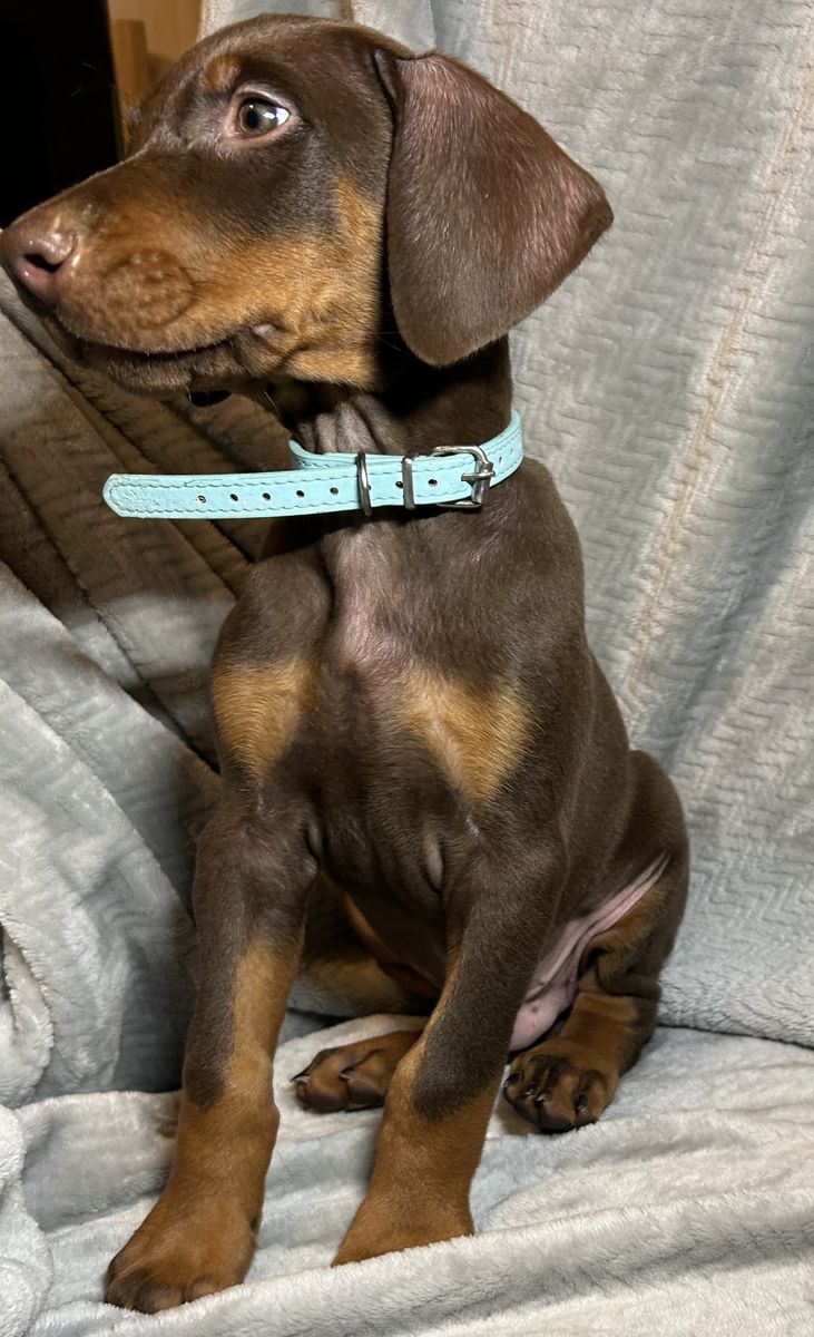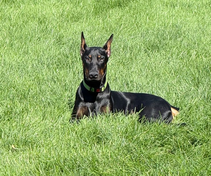 Both parents are health tested. Mom Raya is a blue Doberman and dad Riggs is a black & tan Doberman.