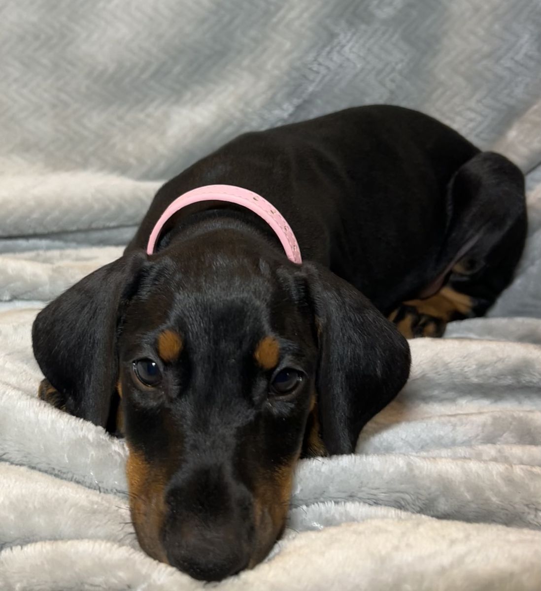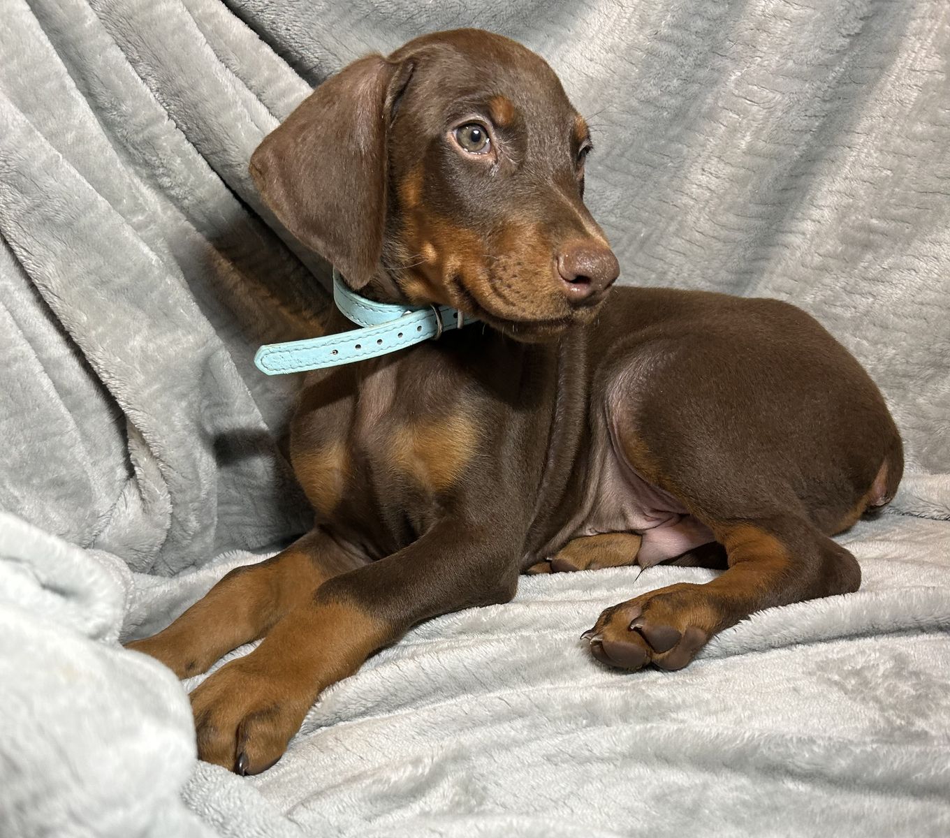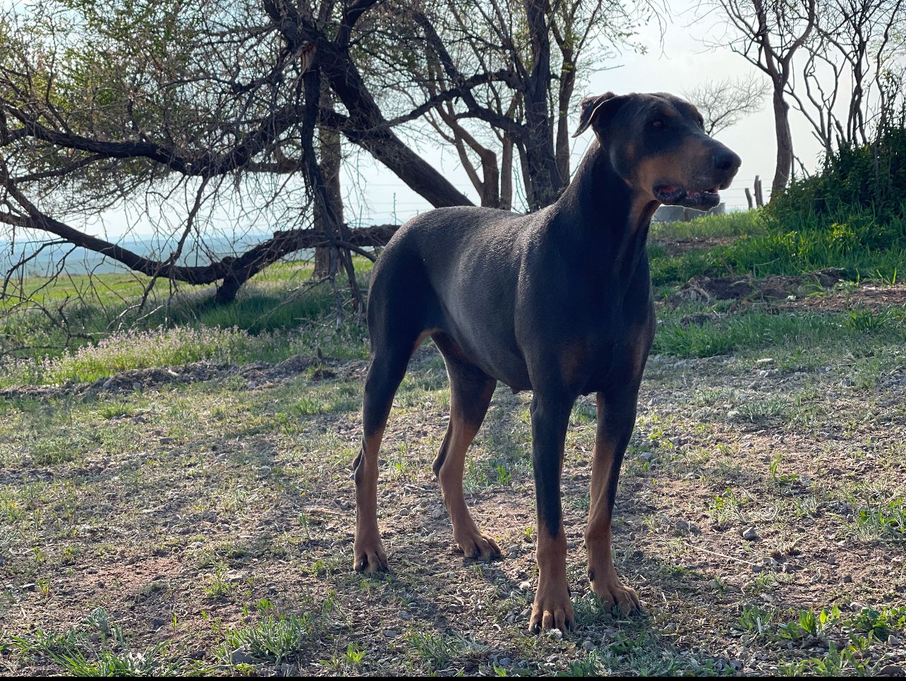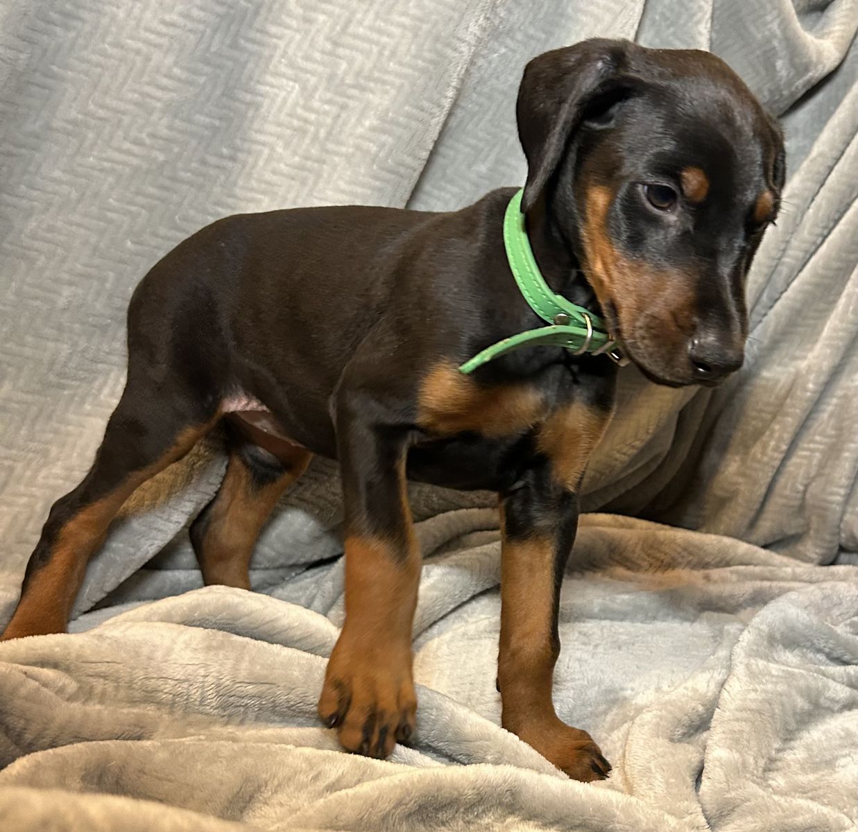 Both parents are health tested. Mom Raya is a blue Doberman and dad Riggs is a black & tan Doberman.