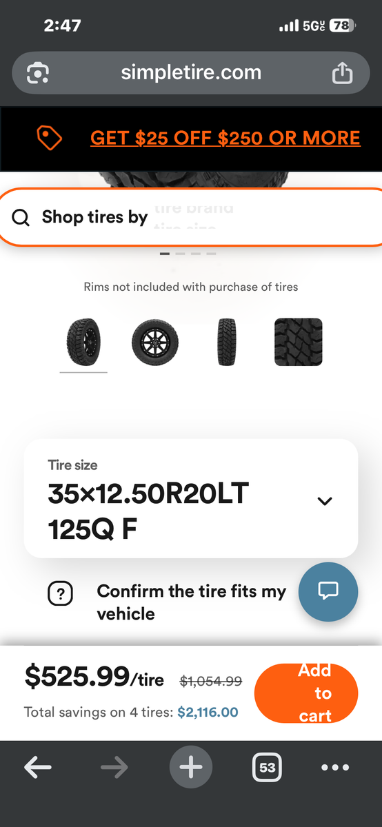 Set of four 35x12.5x20 cooper discover s/t max has 100 miles on them These sale for about 500. A peice my loss is your gain