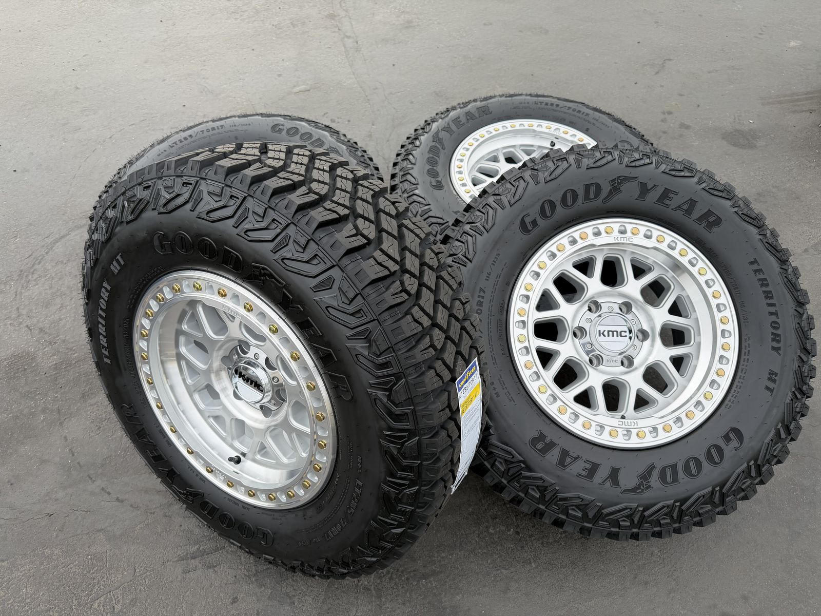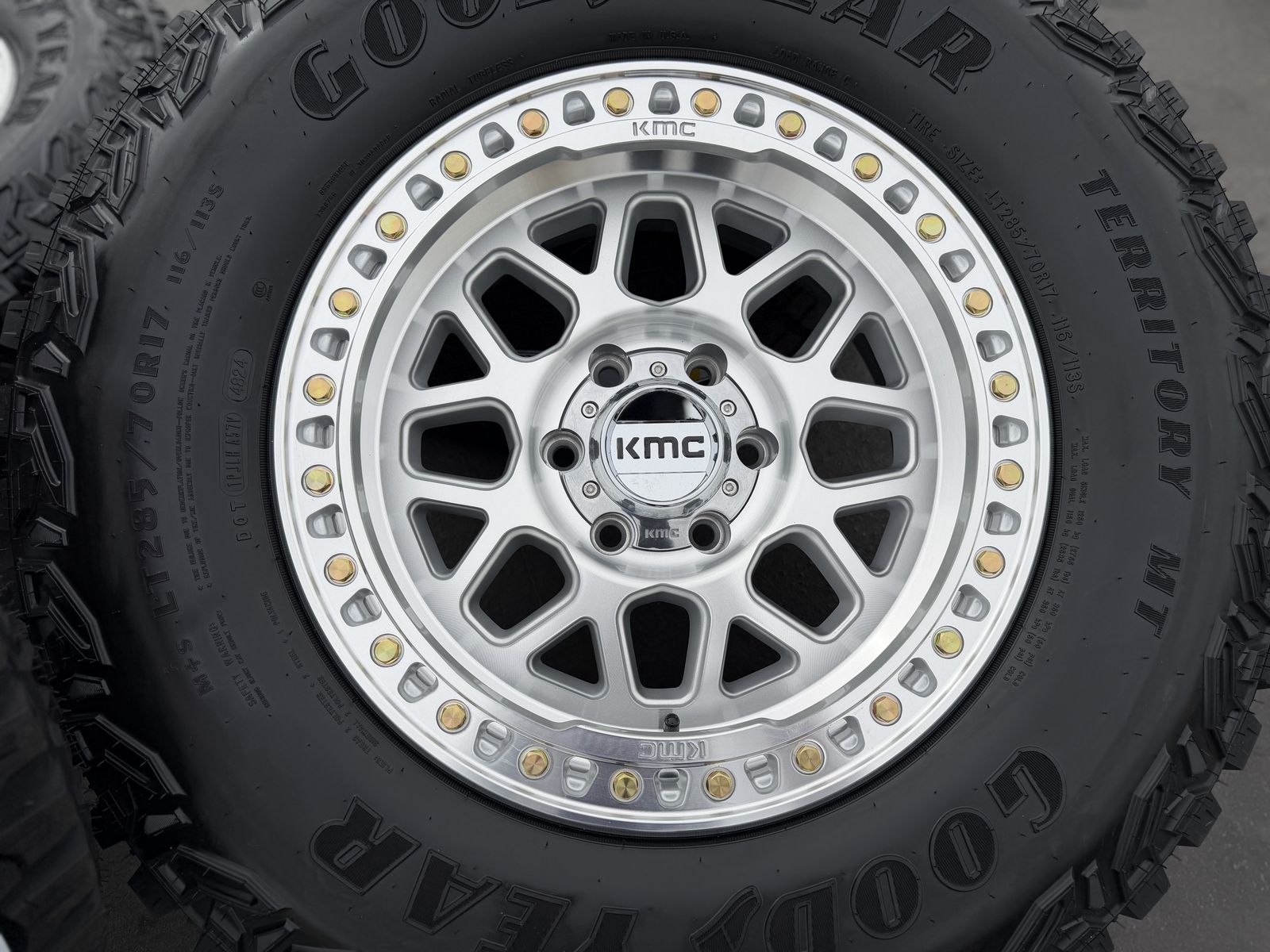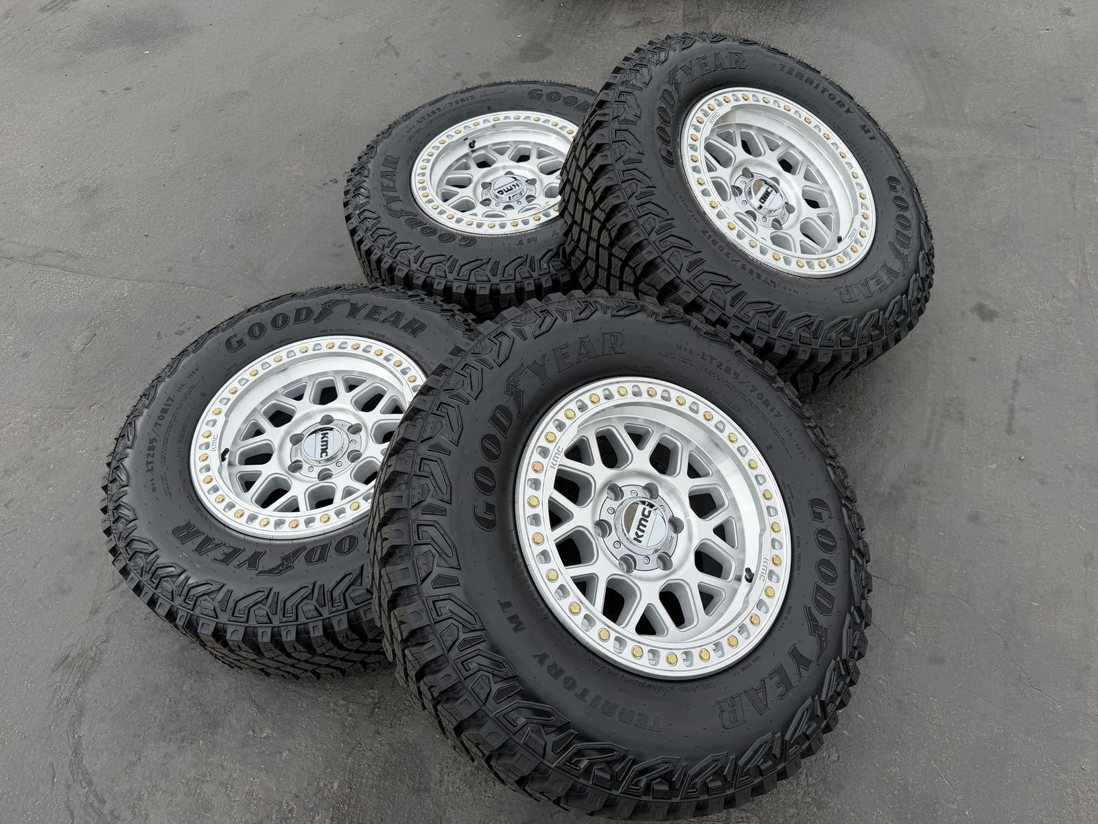 ApplePayBrand new 17x8.5 00et offset KMC KM549 GRS wheels mounted and balanced on a set of 285/70r17 Goodyear Territory MT tires. 6x135 bolt pattern. These fit 2004 and newer Ford F-150 and expedition. HUGE savings. Call or txt 435-760-1194