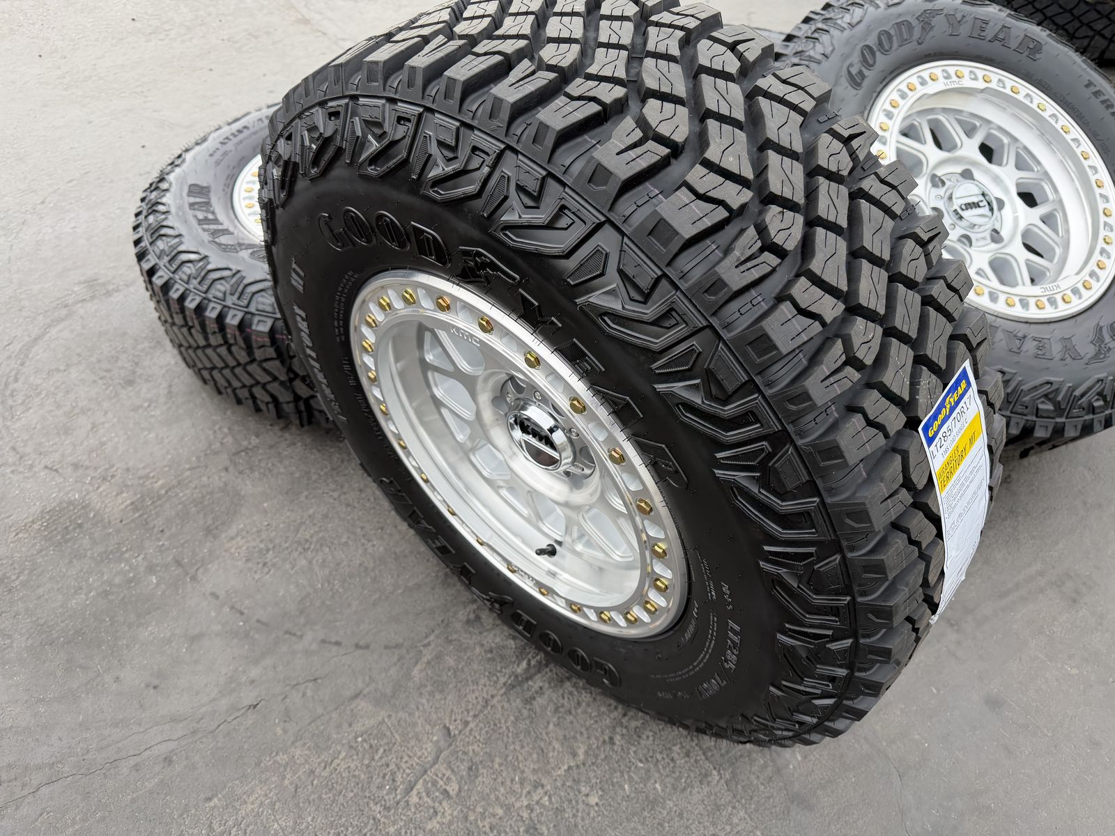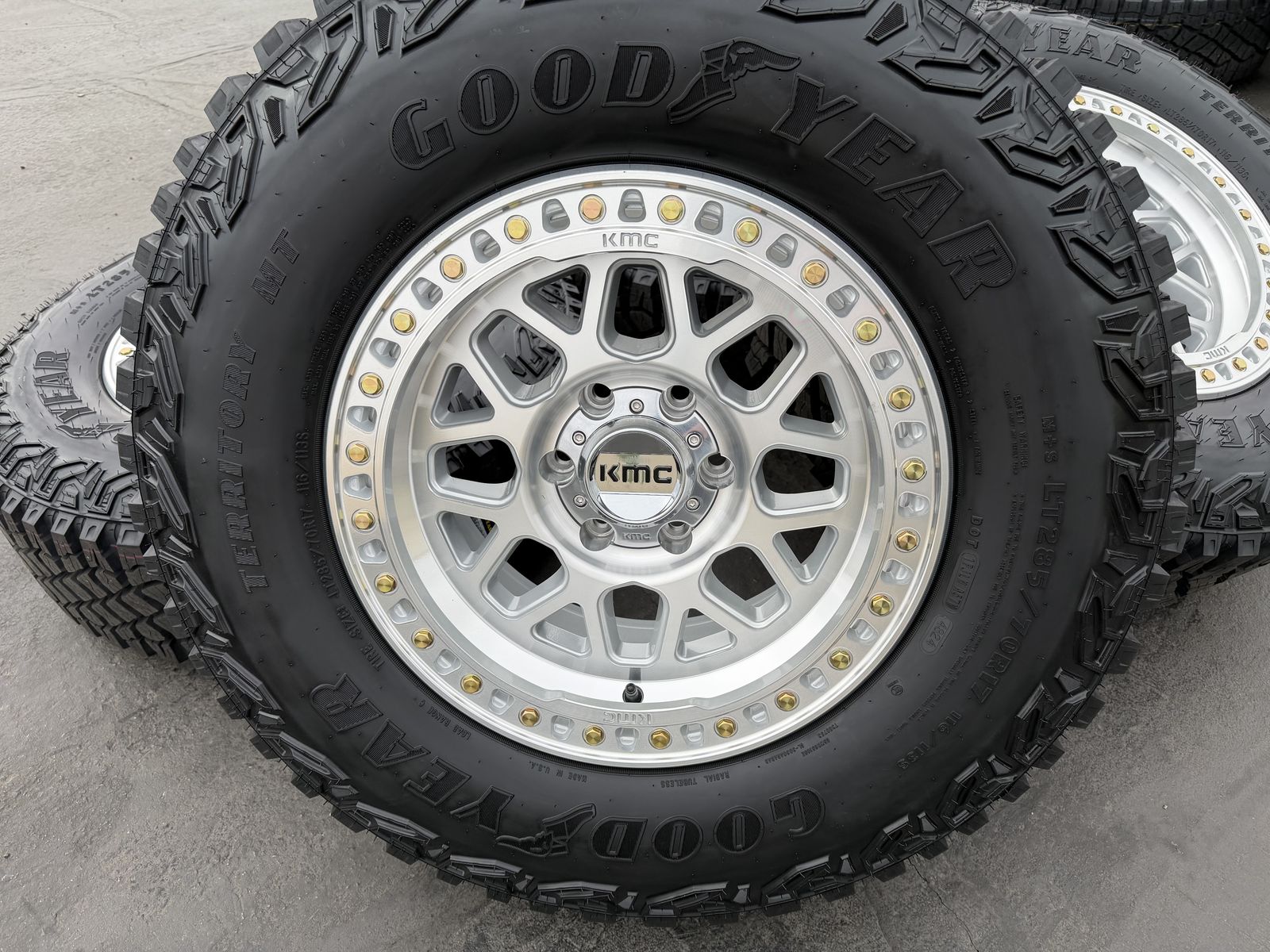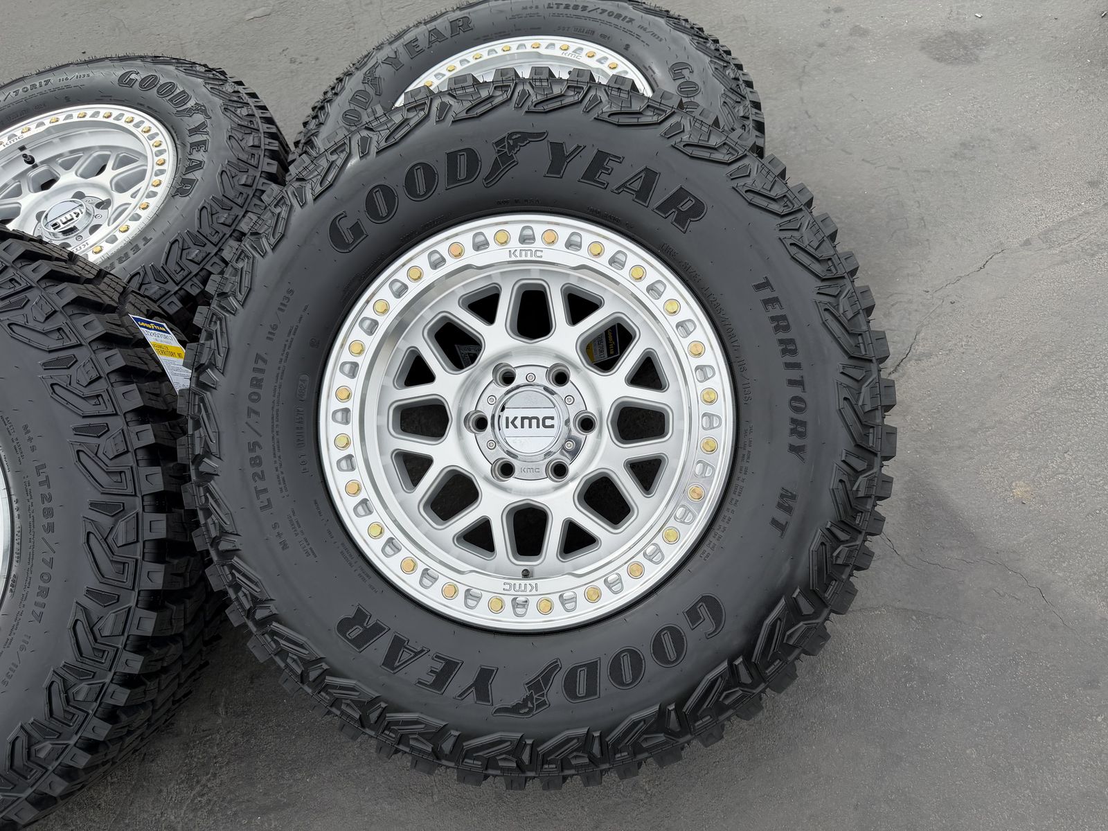 ApplePayBrand new 17x8.5 00et offset KMC KM549 GRS wheels mounted and balanced on a set of 285/70r17 Goodyear Territory MT tires. 6x135 bolt pattern. These fit 2004 and newer Ford F-150 and expedition. HUGE savings. Call or txt 435-760-1194
