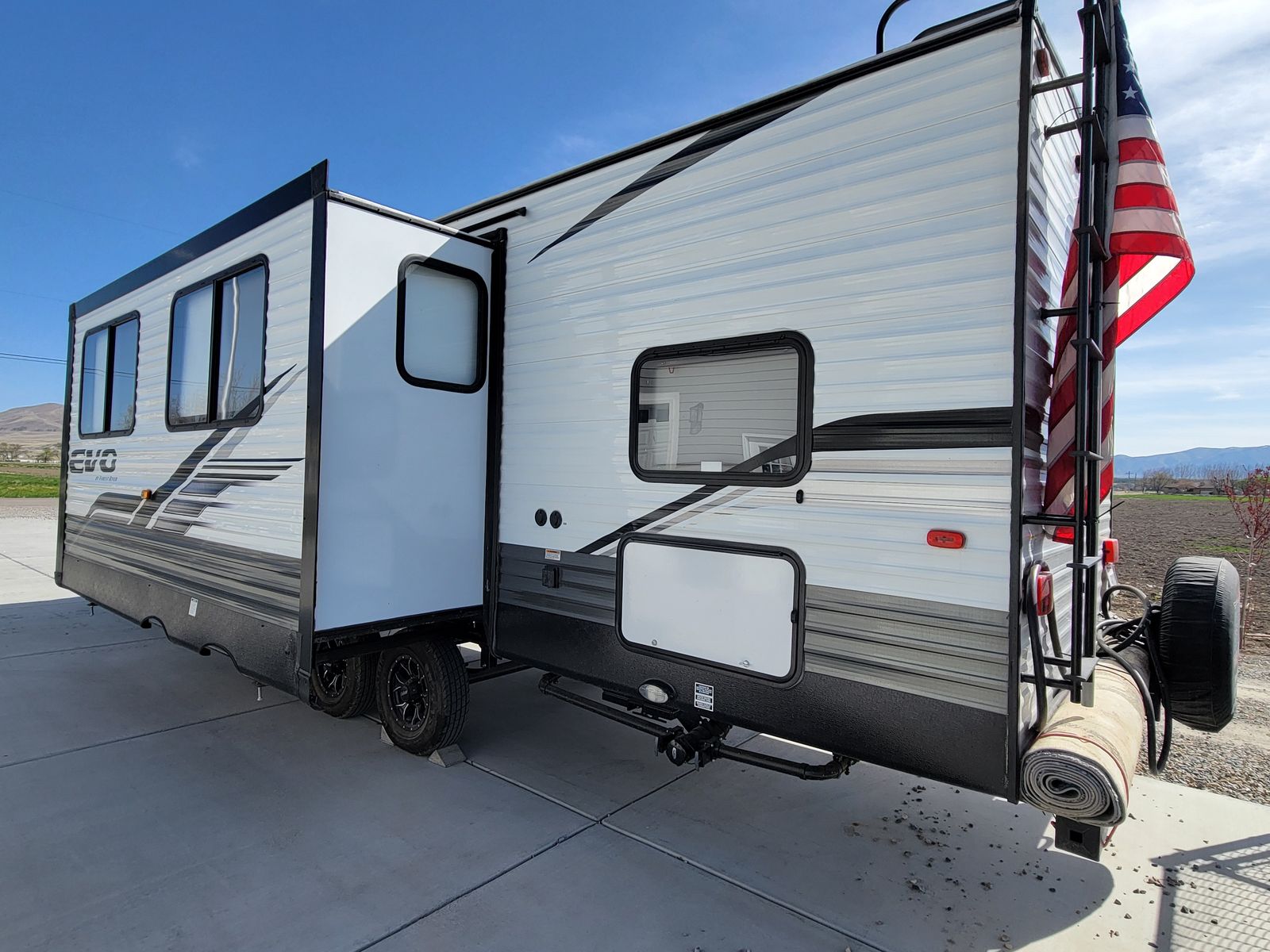 Ready to go Camping!! Like brand new! 2022 Evo by Forest River, used maybe 4 times. Sadly we don't get time to camp anymore. Very clean. Some things never used, everything works. 28.5 ft bumper pull. One large slide-out with table and couch, both fold into beds. Can sleep 6-8 people. Comes with equalizer hitch. 2 large propane tanks, full. Electric hitch and stabilizer jacks. Electric awning with LED lights. Has solar panel to trickle charge battery-very nice not to worry about the batteries dying. Custom solid fold down stairs on front door. TV and stereo with outside speakers, that can also Bluetooth. Fireplace never used. Full bed in front bedroom, with a nice real mattress. Bunk beds in the rear. Large outside storage under master bed, and bottom bunk bed. Comes with portable generator to run TV and A/C. Hvac works well. USB charging ports. Outside propane grittle and mini fridge, never used. Some things still have plastic on them, that should tell you how little it's been used. Pulls great. Have extra supplies that can come with the trailer if interested. Also still under warranty for 3 more years! Must see to appreciate how new and clean this trailer is. Been stored in covered open shed, so the front is a little dirty/sun faded. Come check it out, serious inquiries only. No low ball offers, paid 51K only 4 yrs ago. Located in Bothwell, UT. Call or text Lori (435) 279-7958 Asking only 30K!! Dropped from $45,000! Remember this trailer is literally like brand new with warranty available 3 more years. We dont want it sitting in storage. Your chance for a new camp trailer at a great price!