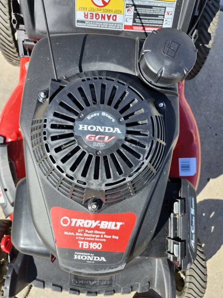 Great lawnmower in excellent shape! Starts on the first pull. Honda engine with the easy start feature. This mower has had very little use. It is not self propelled.