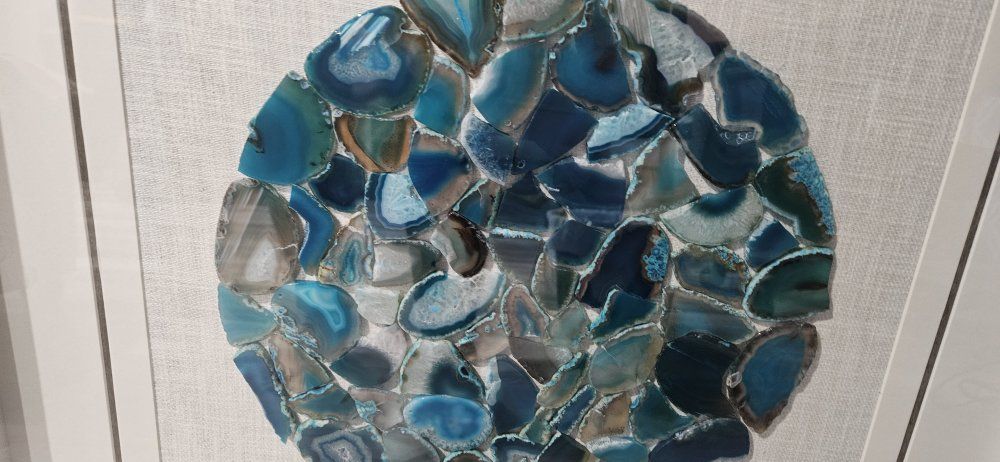 VenmoBrand new, never hung. 23 1/2" x 23 1/2". Sealed under glass Frame Of Polished turquoise Geodes. cash or venmo. Pick up in Lehi near the roller mills. text please.