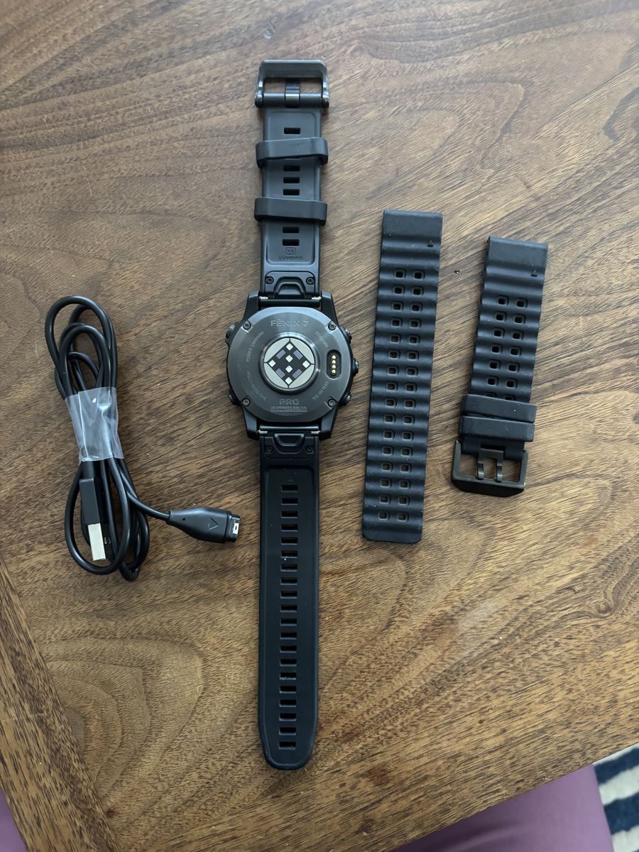 ApplePayWatch is in very good condition. No scratches on the screen (Sapphire lens is almost impossible to scratch), but some minor wear on the bezel as shown in the photos. Battery life is phenomenal. I only charge it once every 2 weeks or so even with frequent GPS activity. Solar charging makes it great for expeditions, etc. Comes with extra band. Has built-in flashlight and ECG app only offered in the PRO model. I have loved sending routes from Strava and getting turn by turn navigation through my headphones. I am only selling it because I upgraded to the Fenix 8. Message with questions. Located near the mouth of Parleys Canyon.