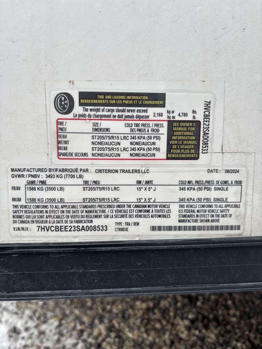 2025 8x18 Criterion enclosed trailer.
