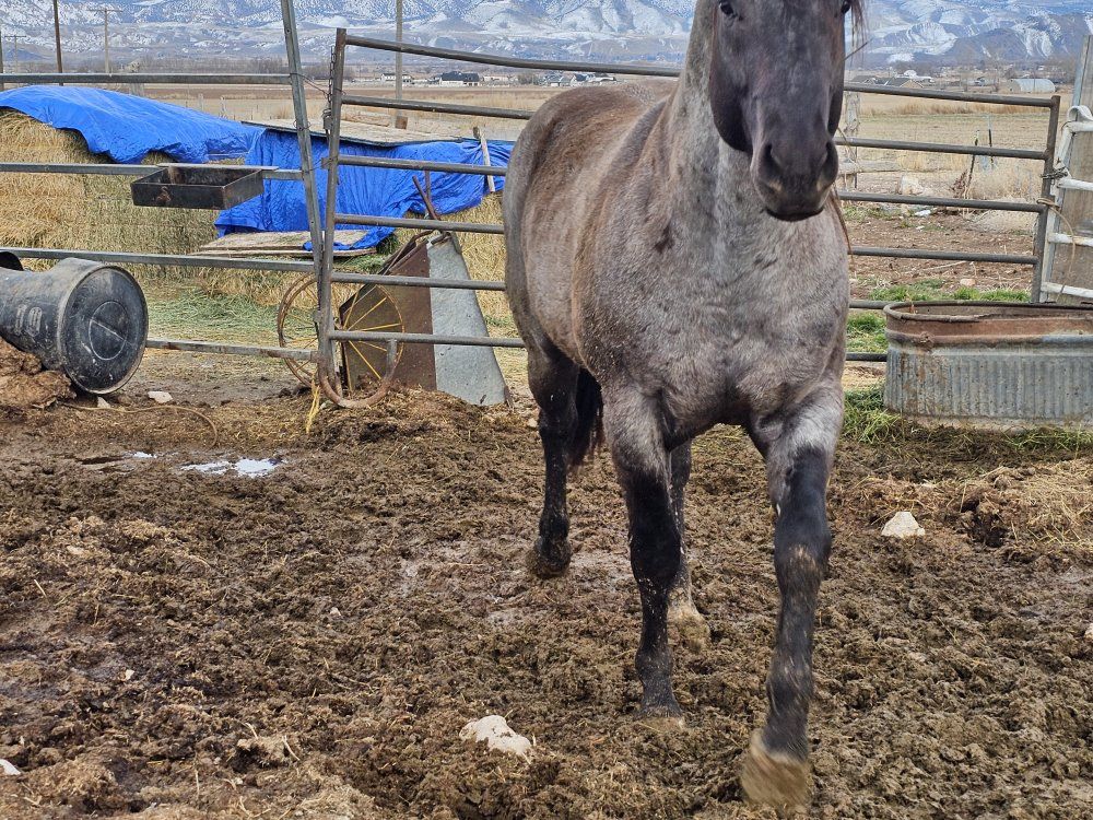 super nice aqha blue roan big great conformation and asset to anyone's program. Great mind can rilly stop,cowey . Big Big motor. sunfrost handcock. 15.1 great foot . Roping ,ranch work. exceptional conformation..take a look you dont want to miss this one.live foal guaranteed.