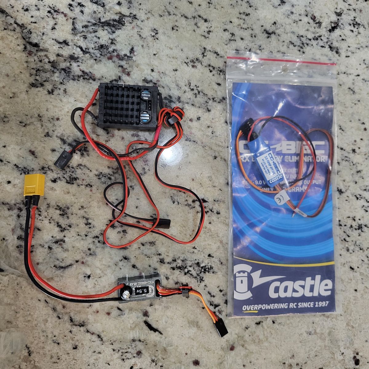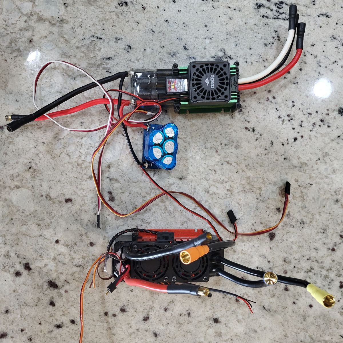 Extra Items added after originally listing this sale which are included are: (2) new Turnigy Marine 180 A ESC’s (one is modified with an extra cap pack and connectors), an additional Futaba 334SBS receiver, A Futaba 6YA431 gyro, (2) Traxxas Link TQI receivers (pn:6518), a Spectrum MR200 receiver, a Spectrum SR300 receiver and a Spectrum SPM9465 DSMX satellite receiver. Thanks, and good luck.