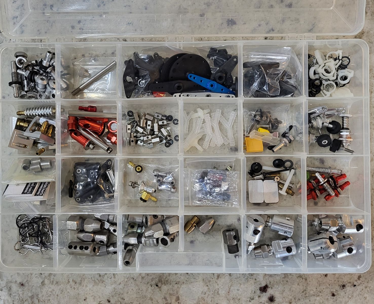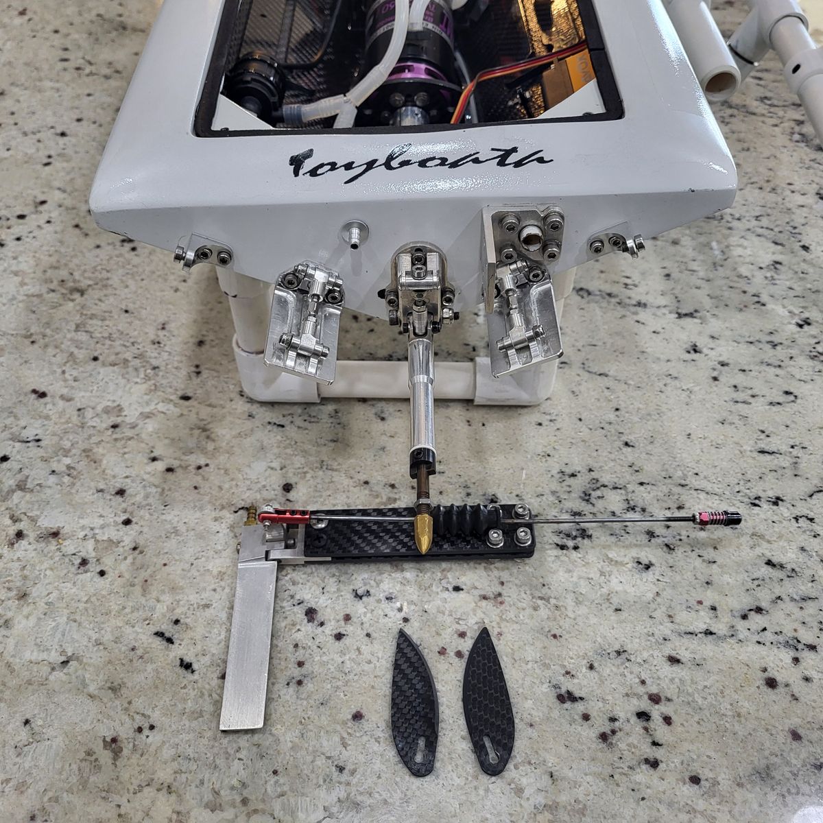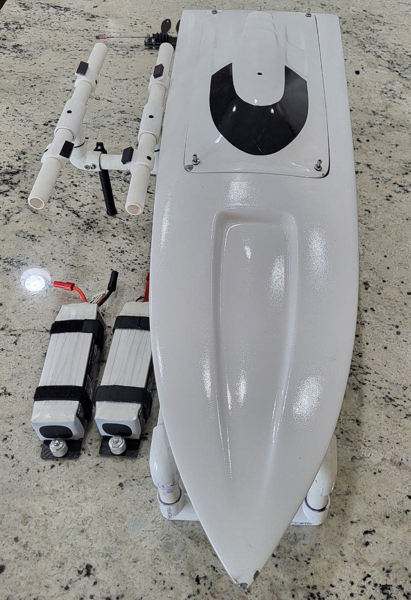 PayPalFor sale is all my RC boat hardware and my last build. The boat is a 36” OSE V hull with a full carbon inlay (hull and canopy). It comes with a custom stand and is equipped with a Lehner 2260 8 wind (~$480 list), and MBP collet and custom Speedmaster rudder assembly. The boat also comes with full frontal floatation and small brushless water pump to keep water flowing when the hull is not moving. Two 5100 mAh 80c RoaringTop lipos mounted on adjustable HPR mounts are included. This boat has been briefly test ran several times and I was able to get it up to 85mph on 12S before I had to move away from my lake. The esc is a 300A Hifei with no data logging. As you can see in the pictures there are two small spots that will need filling/painting, one on the canopy corner and one on the bow tip, beyond that everything is in great condition and ready to roll. Also included in this sale are all my props and hardware items. There are 36 various propellers with drive dogs and bullet nuts included. Notably there are three pairs of Andy Brown sharpened/balanced props: (2) X447 L&R, and one X442 L&R. There are two sets from KBB X450 L&R three blade, and X447 L&R. There is a pair of 4518 L&R from The Prop Shop, and an OSE X445. The remaining props are either in their stock condition or have been roughly sharpened and balanced by me (I would strongly recommend having any of these professionally sharpened and balanced). There are two 180A non-data logging Hifei ESC’s which were used in a Catamaran for 1 season (there is some wire insulation tears on these ESC’s that will need to be shrink wrapped). There are two car esc’s included, a New Castle Creations Mamba XL 8S, and a new Trackstar 34V 8S ESC with programming card (not shown). In the hardware organizer there are (4) 8mm MBP collets and (3) 5mm MBP collets and a large assortment of other collets, there is a large assortment of needle bearings, plumbing supplies, servo arms, hatch locks, and ball ends. The Leopard 4092 and mount are new and have never been used. I’m hoping the rest of the items in the pictures are self-explanatory but feel free to contact me with any questions.