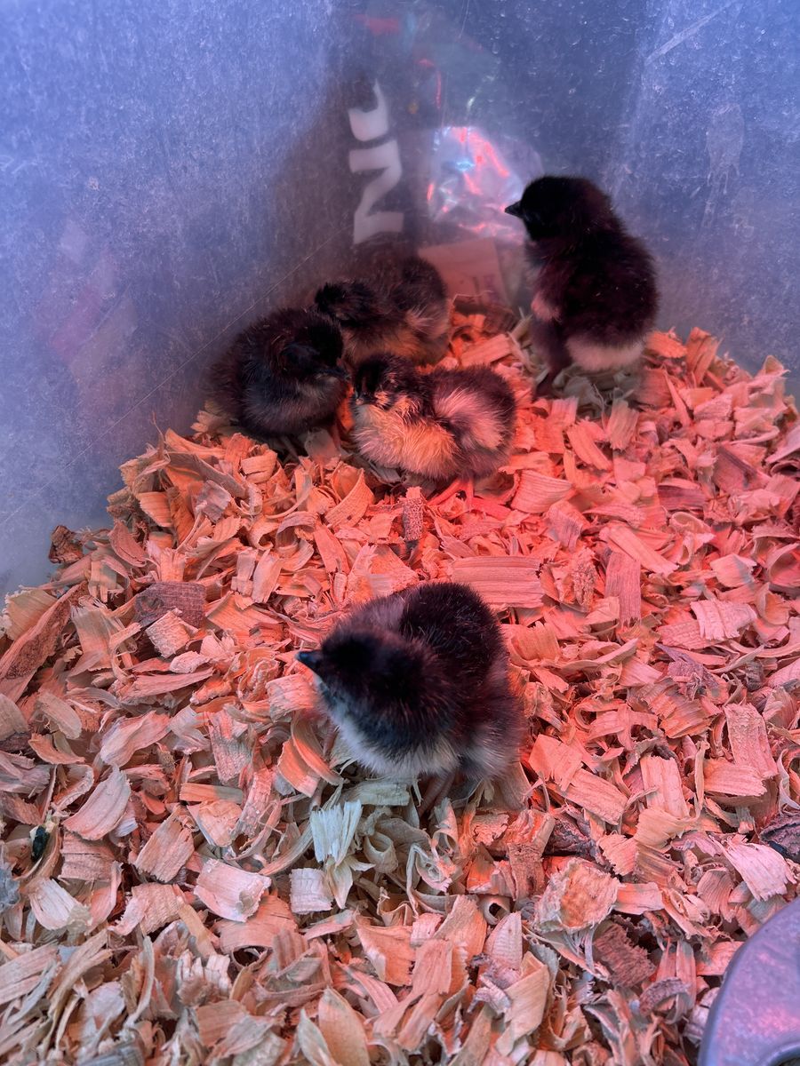 These are one day old today. They are a barnyard mix with the hens being buff Orpington or black Australirp the dad is pure black australorp. 3 dollars a chick for the first week.