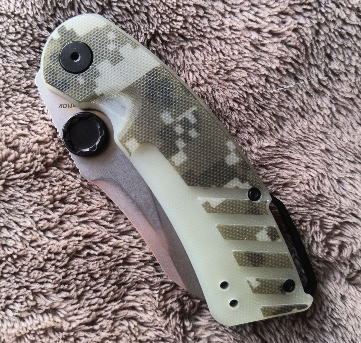 Brand new REVO Recoil AO (assisted open) folding knife. Brand new w manufacturers packaging. Digi camo G10 scales. Only taken out of package for pics. Knife and OEM zippered case / packaging. Assisted open, opens with the flick of the thumb. Blade is perfectly centered and lockup is solid.