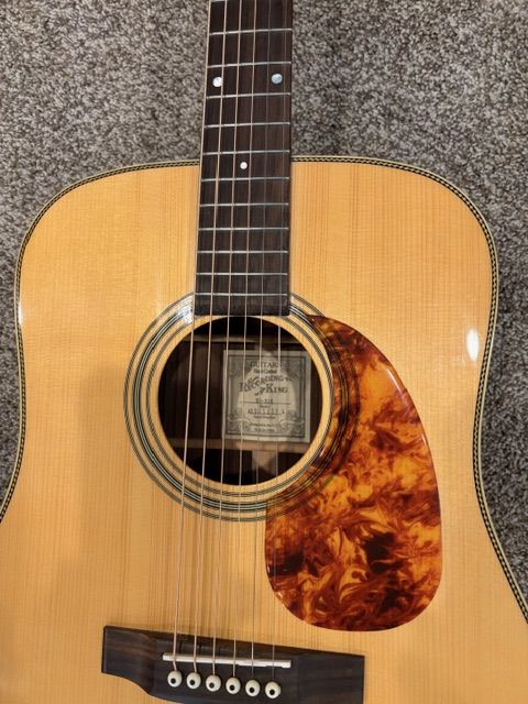 Exellent condition new high end strings comes with new soft gig bag. Has one very small ding shown in pic near bridge. has upgraded The Recording King RD-328 evokes classic dreadnought style, sound & volume thanks to hand-selected tonewoods and vintage styling. The foundation of the 328’s tone comes from solid Adirondack spruce tops that's been naturally aging for the past 30 years. Adirondack’s excellent projection, coupled with three decades of curing delivers a stiff, loud, lightweight top with powerful fundamental tone. Combine the aged tops with solid Rosewood back and sides.